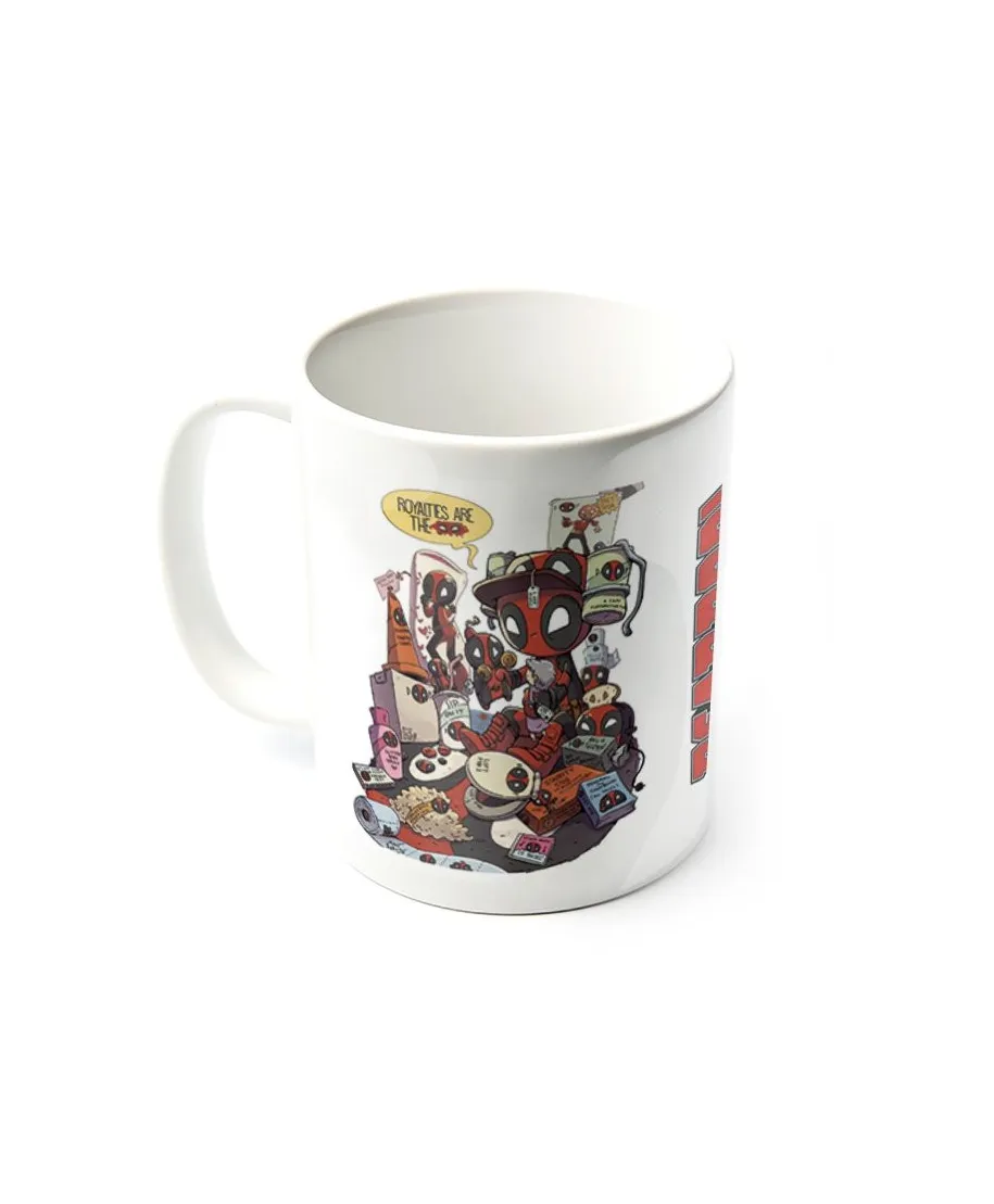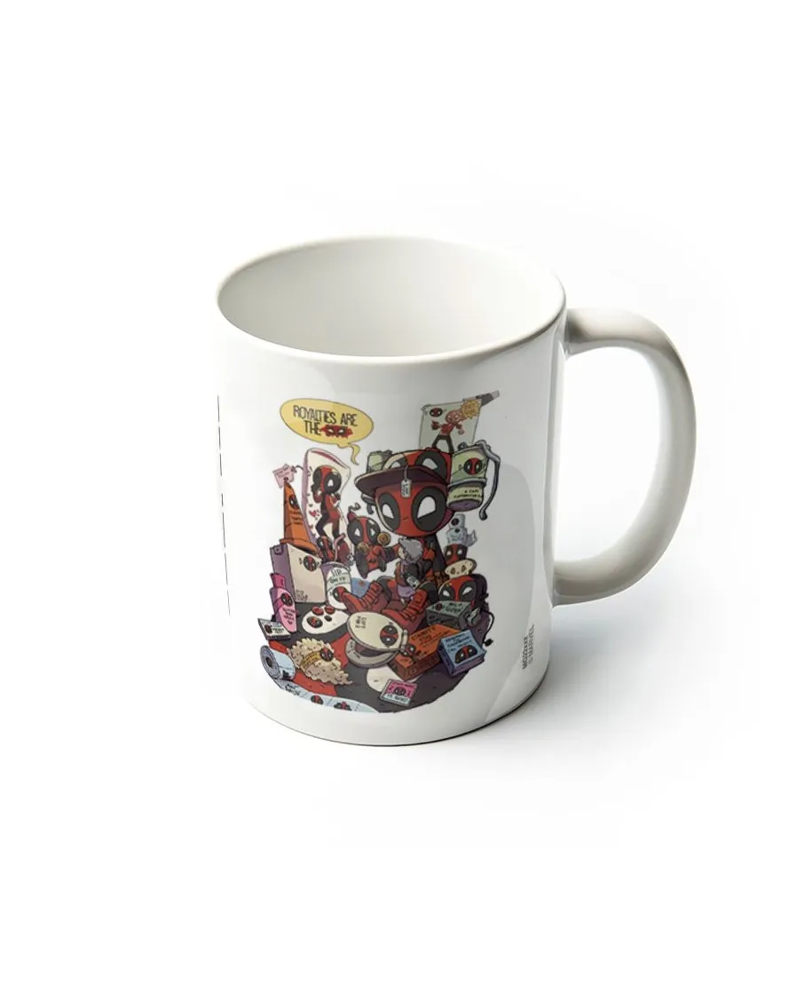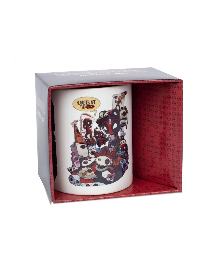 Deadpool Royalties – kubek z uchem Nasz kubek z uchem z ulubionym motywem to idealny pomysł na urozmaicenie kuchennej zastawy, oraz świetny pomysł na prezent dla bliskiej osoby. Nasz produkt jest markowy, posiada oryginalną licencję Jest stworzony z najwyższej jakości porcelany, to gwarancja koloru o wysokim połysku Grafika na kubku jest trwała, w cyfrowej jakości Można myć go w zmywarce i podgrzewać w mikrofalówce Szczegóły techniczne: pojemność 315ml marka: Pyramid Posters