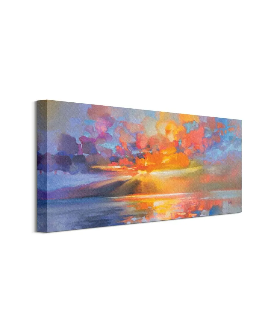 Arran Equinox - obraz na płótnie Naciągnięty na sosnowe krosna. Gotowy do zawieszenia na ścianę. Wykonany z najwyższą dbałością o detale. Obraz jest ostry a barwy nasycone. Ten egzemplarz posiada zadrukowane boki, nie trzeba go dodatkowo oprawiać. Płótno bawełniane na który został naniesiony obraz jest bardzo mocne i posiada ciekawą fakturę. Blejtrama wykonana jest natomiast z grubego drzewa sosnowego. Jest solidna, jej szerokość to 3,5 cm a grubość 2 cm. Kupując ten produkt masz pewność, że kupujesz z legalnego źródła i wspierasz artystów. Obraz jest oryginalny i posiada licencję. Lubisz wyróżniać się ciekawymi, ekskluzywnymi dekoracjami na ścianę? Ten obraz jest idealny dla Ciebie. Nikt nie przejdzie obojętnie obok niego, jest po prostu piękny. Dane techniczne: Płótno bawełniane 300g/m2. Sosnowe krosna o grubości 2 cm i szerokości 3,5 cm. Obraz zadrukowany cyfrowo. Wymiary obrazu 60x30 cm. Marka: Pyramid Posters.