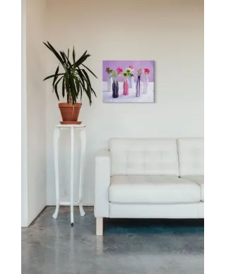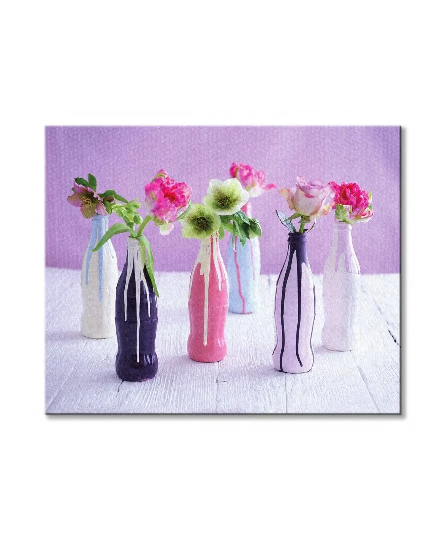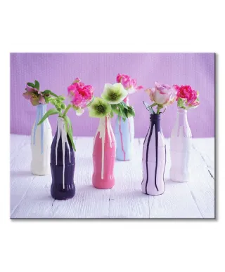 Oryginalny obraz na płótnieKwiaty w butelkach Oryginalny i licencjonowany obraz na płótnie idealny na każdą ścianę. Nasze obrazy wyróżniają: Fantastyczne barwy Wysokie nasycenie barw i ostrość, kolory utrzymują się przez długie lata. Płótno wysokiej jakości Płótno bawełniane 300g/m2 jest trwałe i mocne, jego struktura jest naturalna. Trwałe kolory, Dodatkowo lakierowana powierzchnia sprawia, że kolory są żywe przez dziesięciolecia. Solidna rama, Wykonana jest z naturalnego, sosnowego drewna, jest mocna i gruba a obraz solidny i wytrzymały. Zadrukowane boki, obrazy posiadają zadrukowane boki, nie potrzebują żadnej dodatkowej oprawy. Szczegóły techniczne: wydruk na płótnie bawełnianym 300g/m2 sosnowe krosna o grubości 2 cm i szerokości 3,5 cm druk cyfrowy wymiary obrazów 40x50 cm