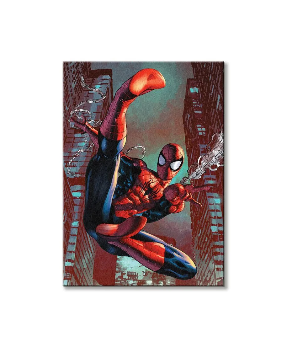 Oryginalny obraz na płótnie Spider-Man Web Sling Oryginalny i licencjonowany obraz na płótnie idealny na każdą ścianę. Nasze obrazy wyróżniają: Fantastyczne barwy Wysokie nasycenie barw i ostrość, kolory utrzymują się przez długie lata. Płótno wysokiej jakości Płótno bawełniane 300g/m2 jest trwałe i mocne, jego struktura jest naturalna. Trwałe kolory, Dodatkowo lakierowana powierzchnia sprawia, że kolory są żywe przez dziesięciolecia. Solidna rama, Wykonana jest z naturalnego, sosnowego drewna, jest mocna i gruba a obraz solidny i wytrzymały. Zadrukowane boki, obrazy posiadają zadrukowane boki, nie potrzebują żadnej dodatkowej oprawy. Szczegóły techniczne: wydruk na płótnie bawełnianym 300g/m2 sosnowe krosna o grubości 2 cm i szerokości 3,5 cm druk cyfrowy wymiary obrazów 85x120 cm