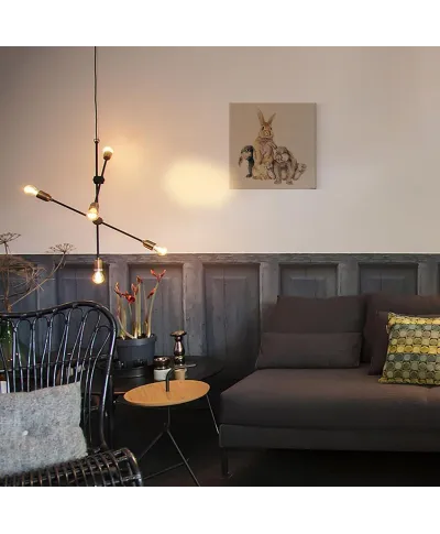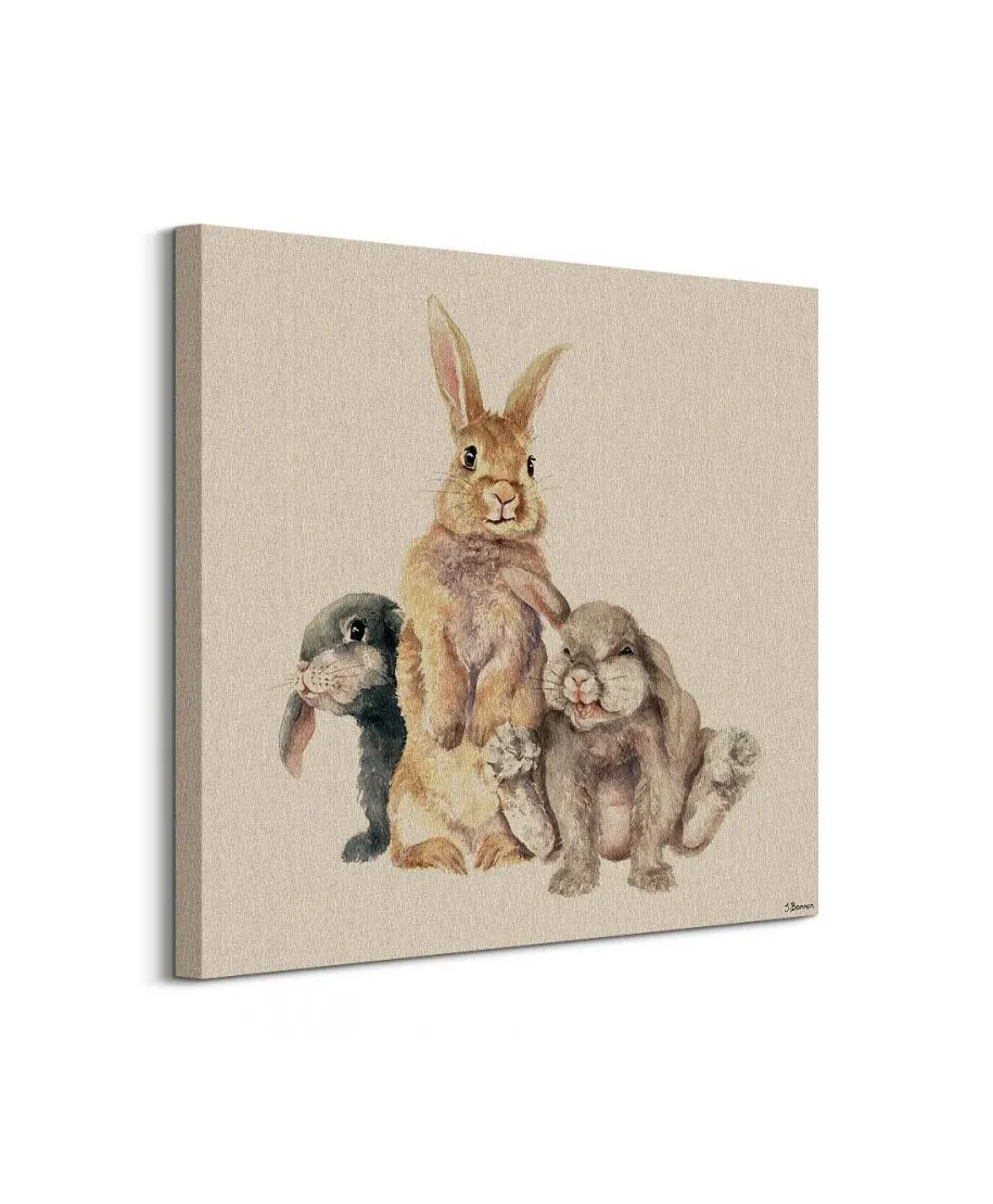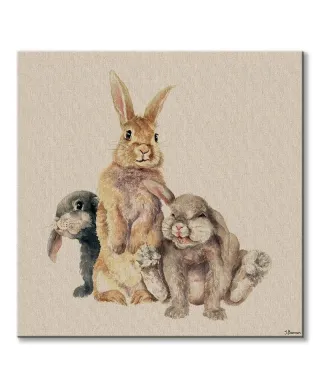 Oryginalny obraz na płótnie Trzy króliczki Oryginalny i licencjonowany obraz na płótnie idealny na każdą ścianę. Nasze obrazy wyróżniają: Fantastyczne barwy Wysokie nasycenie barw i ostrość, kolory utrzymują się przez długie lata. Płótno wysokiej jakości Płótno bawełniane 300g/m2 jest trwałe i mocne, jego struktura jest naturalna. Trwałe kolory, Dodatkowo lakierowana powierzchnia sprawia, że kolory są żywe przez dziesięciolecia. Solidna rama, Wykonana jest z naturalnego, sosnowego drewna, jest mocna i gruba a obraz solidny i wytrzymały. Zadrukowane boki, obrazy posiadają zadrukowane boki, nie potrzebują żadnej dodatkowej oprawy. Szczegóły techniczne: wydruk na płótnie bawełnianym 300g/m2 sosnowe krosna o grubości 2 cm i szerokości 3,5 cm druk cyfrowy wymiary obrazów 60x60 cm