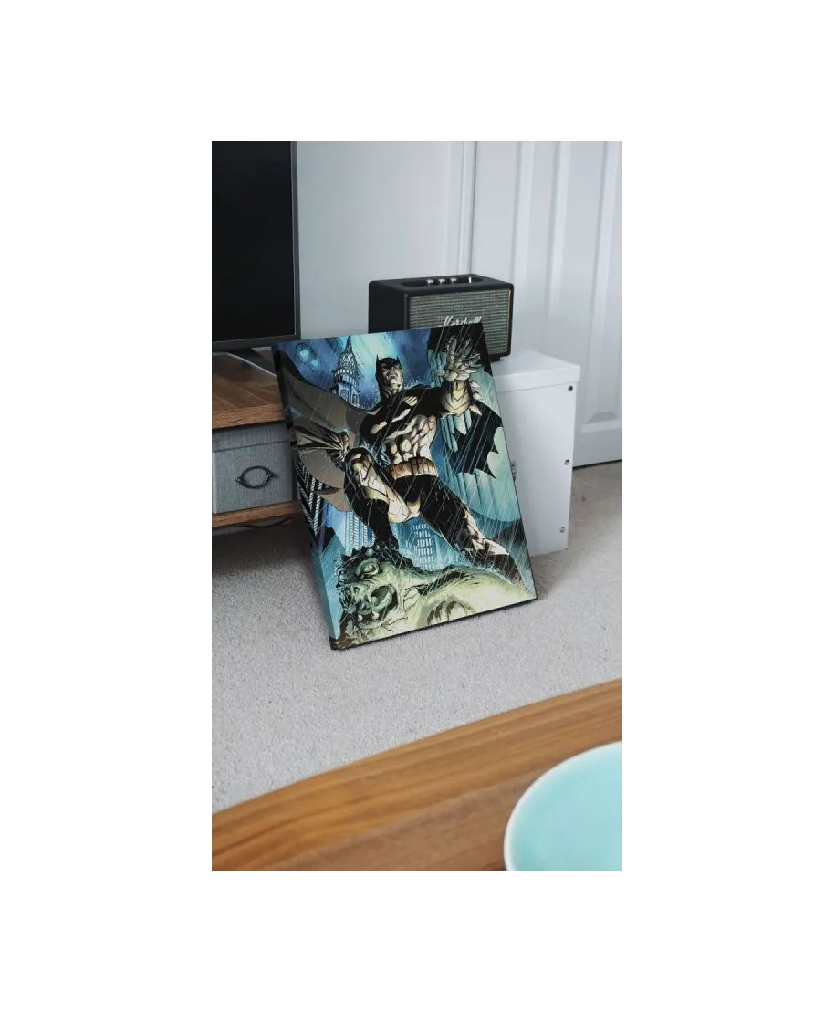Oryginalny obraz na płótnie Batman Storm Oryginalny i licencjonowany obraz na płótnie idealny na każdą ścianę. Nasze obrazy wyróżniają: Fantastyczne barwy Wysokie nasycenie barw i ostrość, kolory utrzymują się przez długie lata. Płótno wysokiej jakości Płótno bawełniane 300g/m2 jest trwałe i mocne, jego struktura jest naturalna. Trwałe kolory, Dodatkowo lakierowana powierzchnia sprawia, że kolory są żywe przez dziesięciolecia. Solidna rama, Wykonana jest z naturalnego, sosnowego drewna, jest mocna i gruba a obraz solidny i wytrzymały. Zadrukowane boki, obrazy posiadają zadrukowane boki, nie potrzebują żadnej dodatkowej oprawy. Szczegóły techniczne: wydruk na płótnie bawełnianym 300g/m2 sosnowe krosna o grubości 2 cm i szerokości 3,5 cm druk cyfrowy wymiary obrazów 60x80 cm