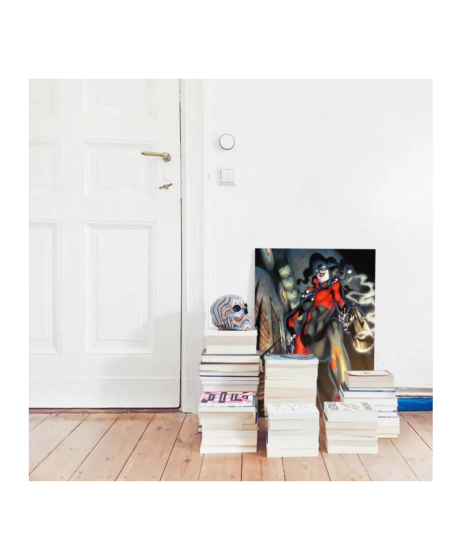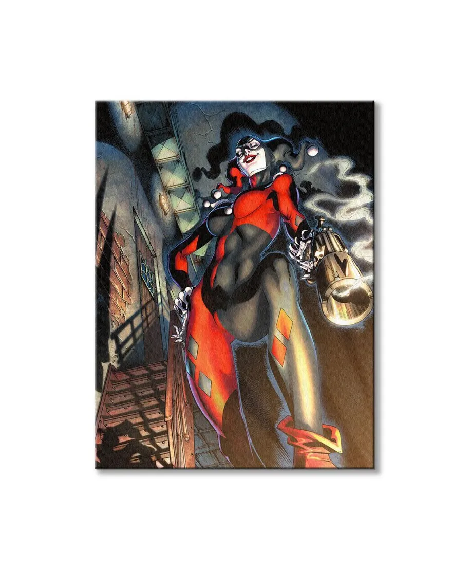 Oryginalny obraz na płótnie Harley Quinn Gun Smoke Oryginalny i licencjonowany obraz na płótnie idealny na każdą ścianę. Nasze obrazy wyróżniają: Fantastyczne barwy Wysokie nasycenie barw i ostrość, kolory utrzymują się przez długie lata. Płótno wysokiej jakości Płótno bawełniane 300g/m2 jest trwałe i mocne, jego struktura jest naturalna. Trwałe kolory, Dodatkowo lakierowana powierzchnia sprawia, że kolory są żywe przez dziesięciolecia. Solidna rama, Wykonana jest z naturalnego, sosnowego drewna, jest mocna i gruba a obraz solidny i wytrzymały. Zadrukowane boki, obrazy posiadają zadrukowane boki, nie potrzebują żadnej dodatkowej oprawy. Szczegóły techniczne: wydruk na płótnie bawełnianym 300g/m2 sosnowe krosna o grubości 2 cm i szerokości 3,5 cm druk cyfrowy wymiary obrazów 60x80 cm