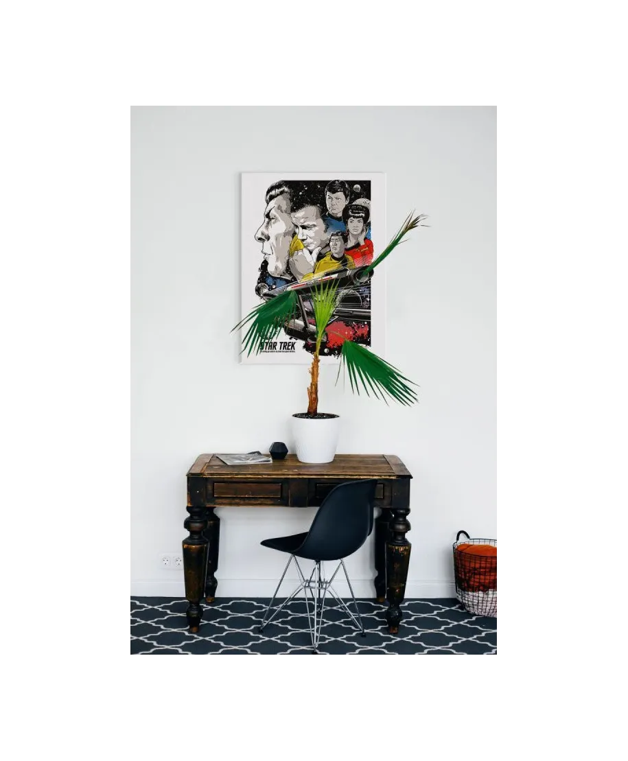 Oryginalny obraz na płótnie Star Trek Boldly Go 50th Anniversary Oryginalny i licencjonowany obraz na płótnie idealny na każdą ścianę. Nasze obrazy wyróżniają: Fantastyczne barwy Wysokie nasycenie barw i ostrość, kolory utrzymują się przez długie lata. Płótno wysokiej jakości Płótno bawełniane 300g/m2 jest trwałe i mocne, jego struktura jest naturalna. Trwałe kolory, Dodatkowo lakierowana powierzchnia sprawia, że kolory są żywe przez dziesięciolecia. Solidna rama, Wykonana jest z naturalnego, sosnowego drewna, jest mocna i gruba a obraz solidny i wytrzymały. Zadrukowane boki, obrazy posiadają zadrukowane boki, nie potrzebują żadnej dodatkowej oprawy. Szczegóły techniczne: wydruk na płótnie bawełnianym 300g/m2 sosnowe krosna o grubości 2 cm i szerokości 3,5 cm druk cyfrowy wymiary obrazów 60x80 cm