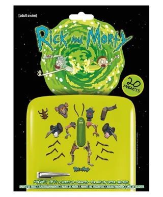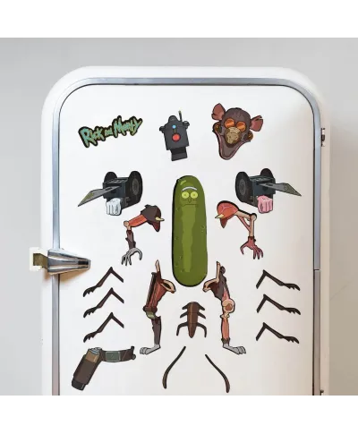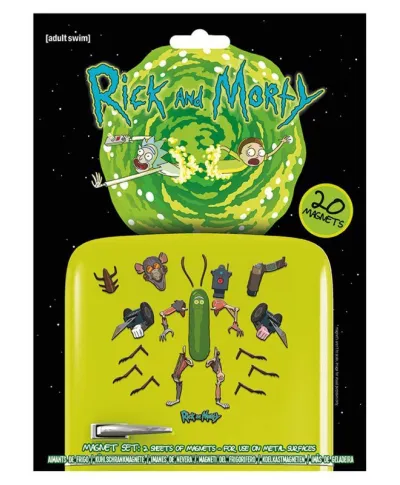 Rick and Morty Weaponize The Pickle - zestaw magnesów Solidne i wytrzymałe magnesy na lodówkę, magnetyczną ścianę czy tablicę. 18 sztuk magnesów o różnych rozmiarach i kształtach. Idealne dla dzieci, młodzieży i dorosłych. Oryginalne gadżety: Magnesy posiadają oficjalną licencję producenta. W opakowaniu znajdują się: Gumowe magnesy na arkuszu o wymiarach 18x24 cm Marka: Pyramid Posters