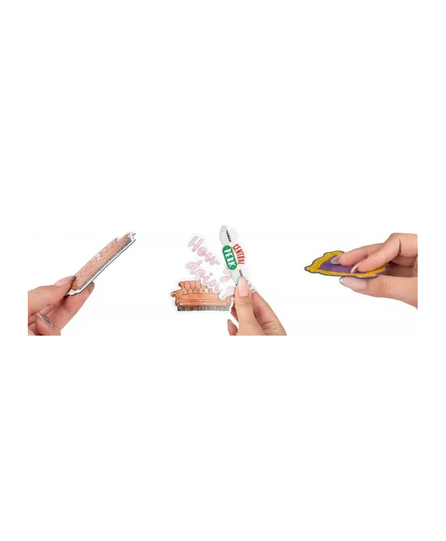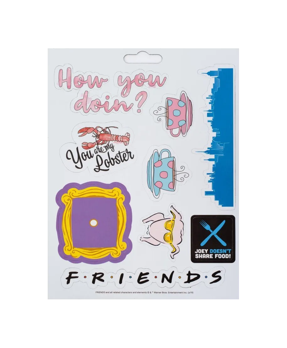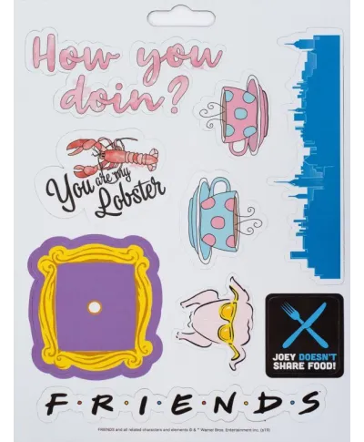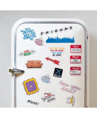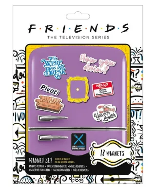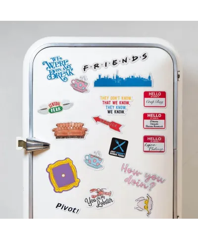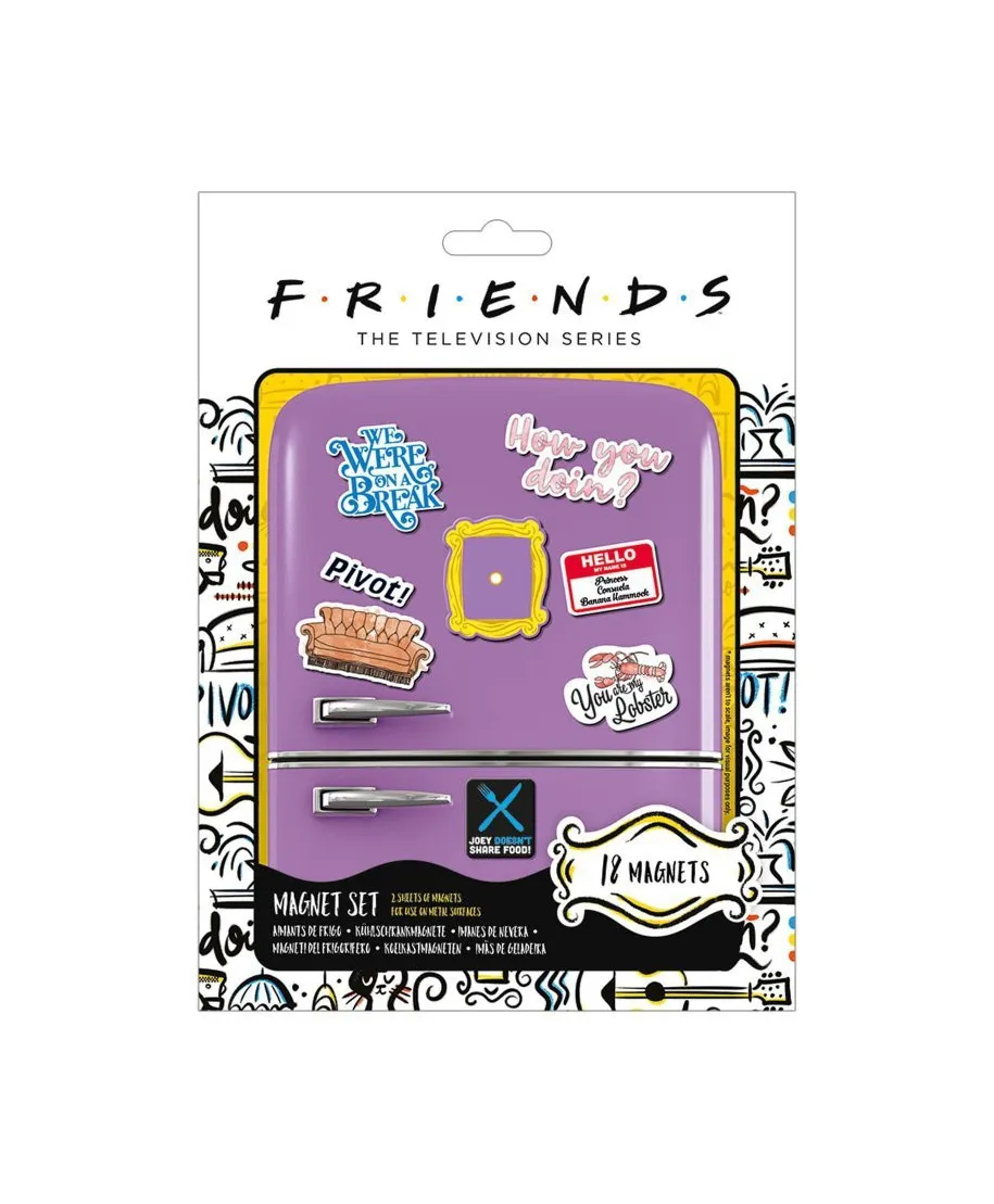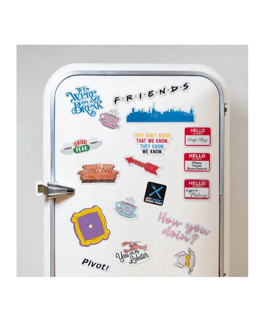 Friends How You Doin' - zestaw magnesów Solidne i wytrzymałe magnesy na lodówkę, magnetyczną ścianę czy tablicę. 18 sztuk magnesów o różnych rozmiarach i kształtach. Idealne dla dzieci, młodzieży i dorosłych. Oryginalne gadżety: Magnesy posiadają oficjalną licencję producenta. W opakowaniu znajdują się: Gumowe magnesy na arkuszu o wymiarach 18x24 cm Marka: Pyramid Posters