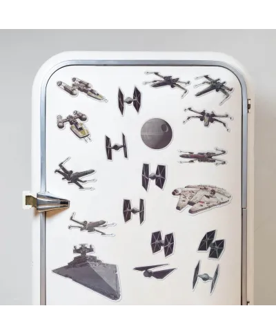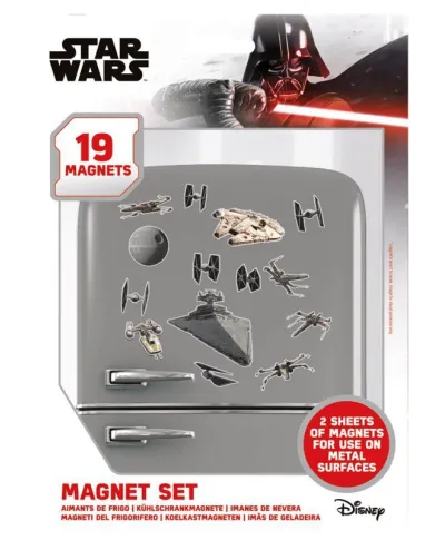 Star Wars Death Star Battle - zestaw magnesów Solidne i wytrzymałe magnesy na lodówkę, magnetyczną ścianę czy tablicę. 18 sztuk magnesów o różnych rozmiarach i kształtach. Idealne dla dzieci, młodzieży i dorosłych. Oryginalne gadżety: Magnesy posiadają oficjalną licencję producenta. W opakowaniu znajdują się: Gumowe magnesy na arkuszu o wymiarach 18x24 cm Marka: Pyramid Posters