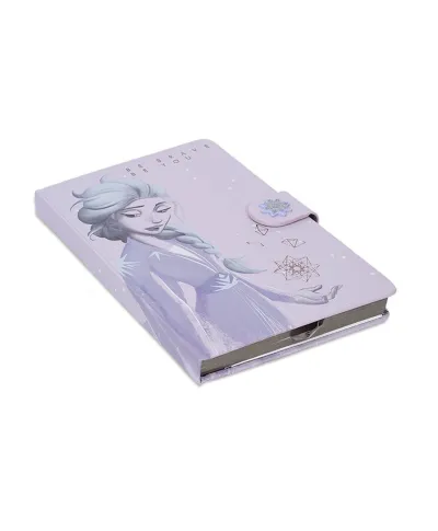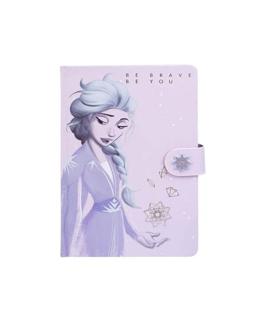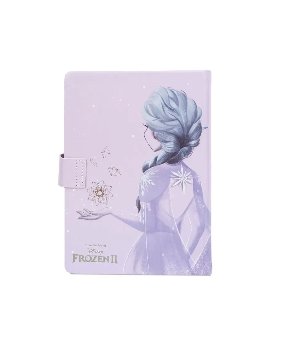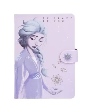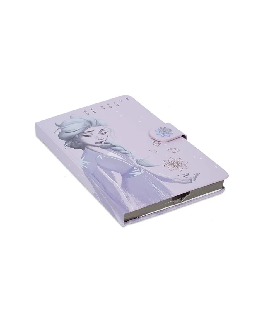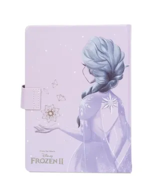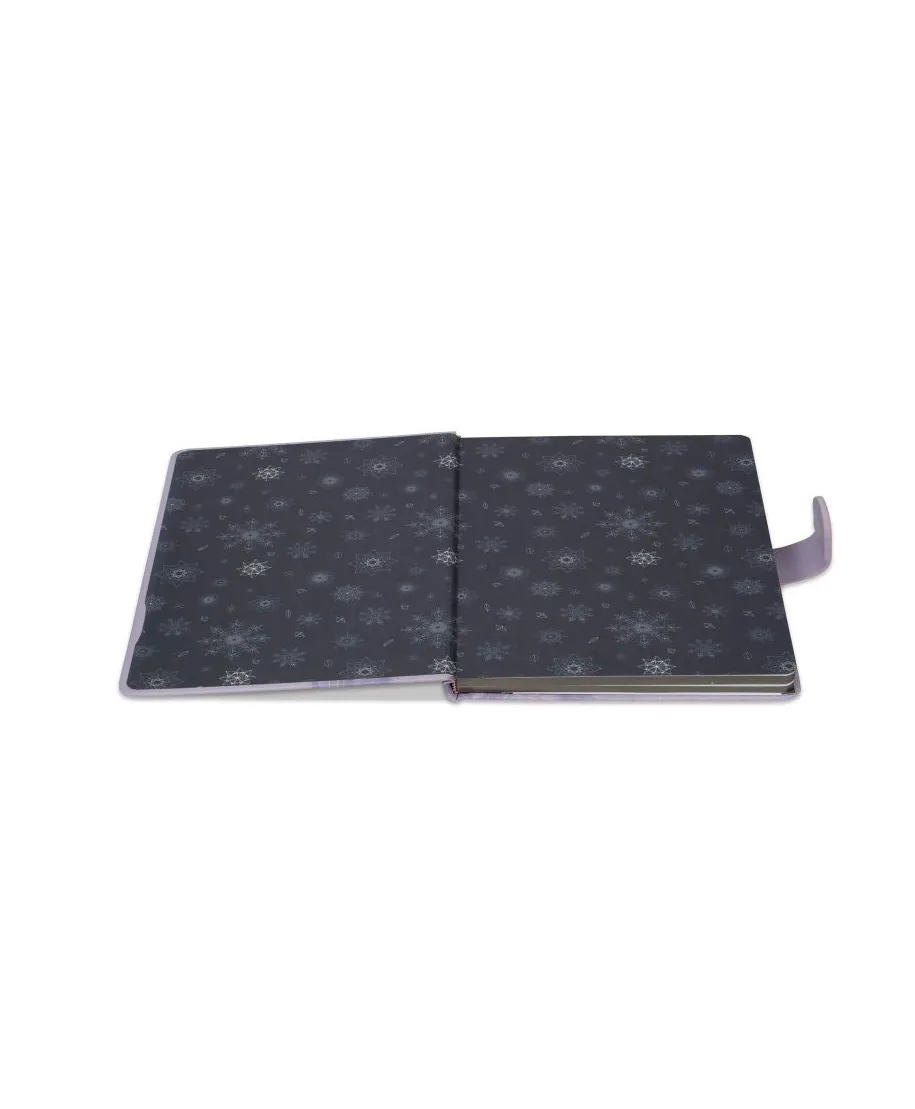 Notes Frozen 2 Lilac Snow Świetny gadżet który wykorzystasz zarówno w szkole, jak i w pracy. Idealnie sprawdzi się też jako dziennik czy pamiętnik. Twarda okładka, zadrukowana fotografią o intensywnych i wyrazistych barwach. 120 kartek w szeroką linie ozdobione grafiką z głównego motywu. Zamykany na kolorową gumkę. Posiada oficjalną licencję producenta, to oryginalny gadżet! Wymiary zeszytu: 14,8x21 cm