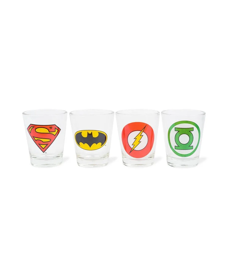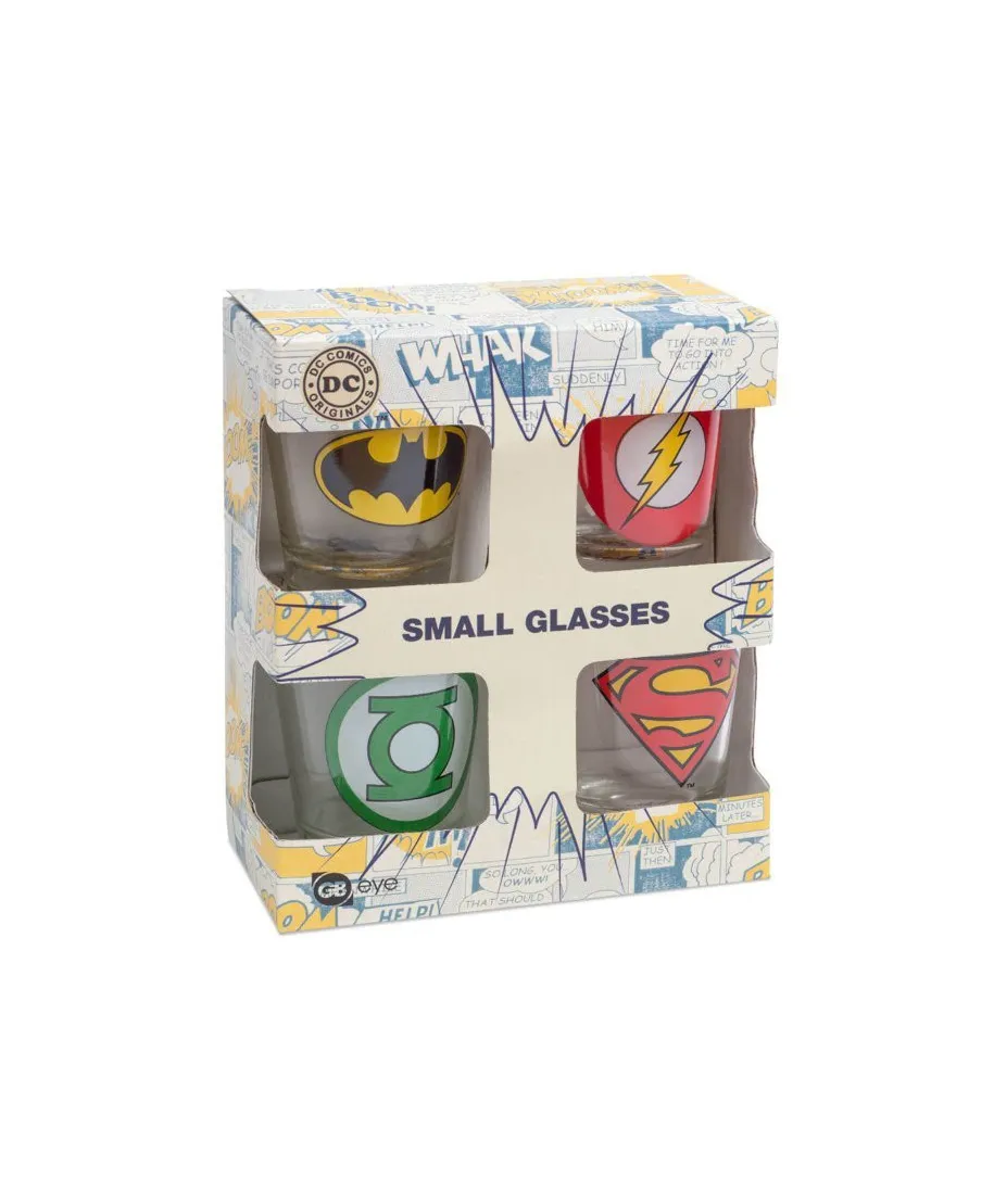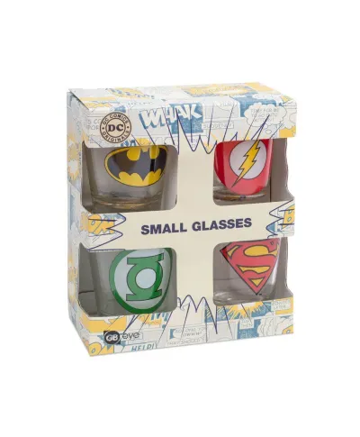 Szklane kieliszki DC Comics Logos Oryginalne szklane kieliszki z popularnym motywem. Bardzo mocny i trwały nadruk na każdym kieliszku. Opakowanie zawiera cztery kieliszki z grafiką. Lubisz markowe gadżety? Kieliszki są oryginalne, to oficjalne, licencjonowane wydanie! Przedstawione kieliszki mają pojemność 60 ml. Marka: GBeye