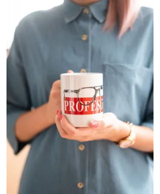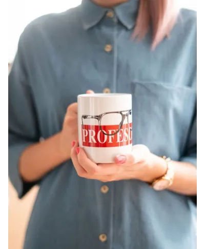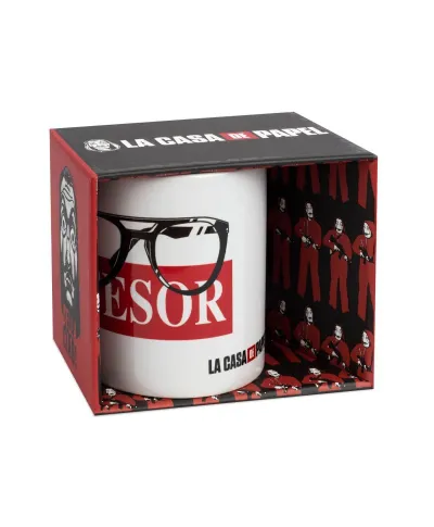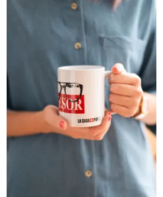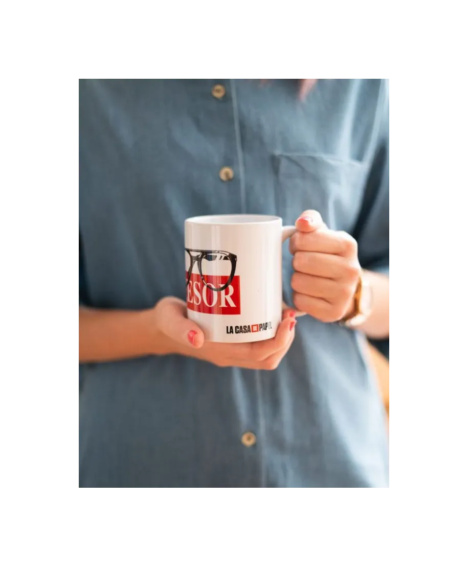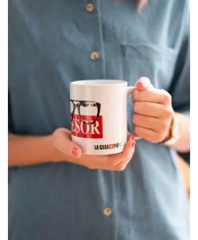 Dom z Papieru Profesor – kubek z uchem Nasz kubek z uchem z ulubionym motywem to idealny pomysł na urozmaicenie kuchennej zastawy, oraz świetny pomysł na prezent dla bliskiej osoby. Nasz produkt jest markowy, posiada oryginalną licencję Jest stworzony z najwyższej jakości porcelany, to gwarancja koloru o wysokim połysku Grafika na kubku jest trwała, w cyfrowej jakości Można myć go w zmywarce i podgrzewać w mikrofalówce Szczegóły techniczne: pojemność 330 ml