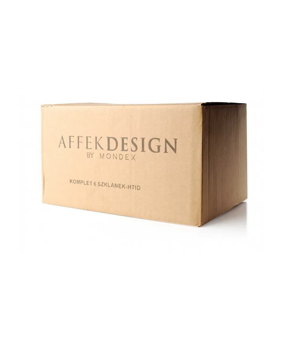 Komplet 6 szklanek do soku lub wody marki Affek Design by Mondex. Szklanki ze szkła barwionego na zielono. Wymiary: średnica 8cm, wysokość 13cm. Pojemność: 300ml