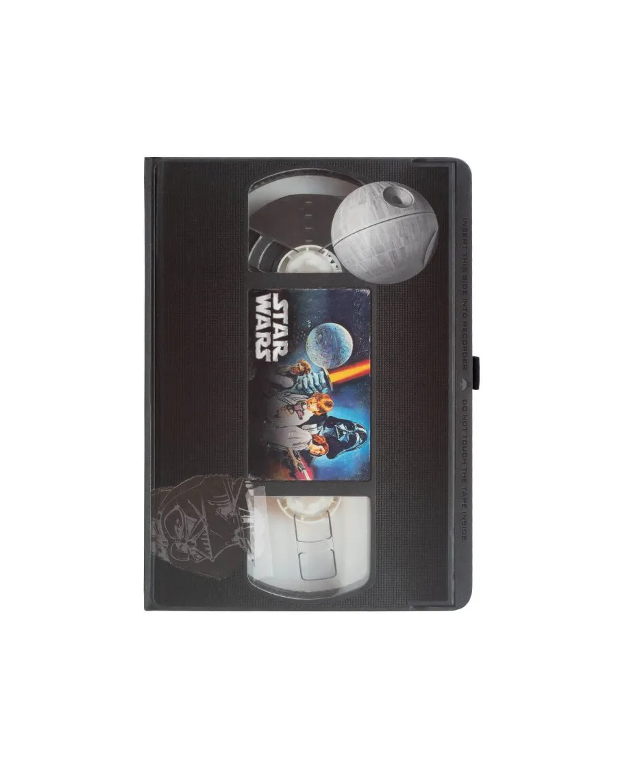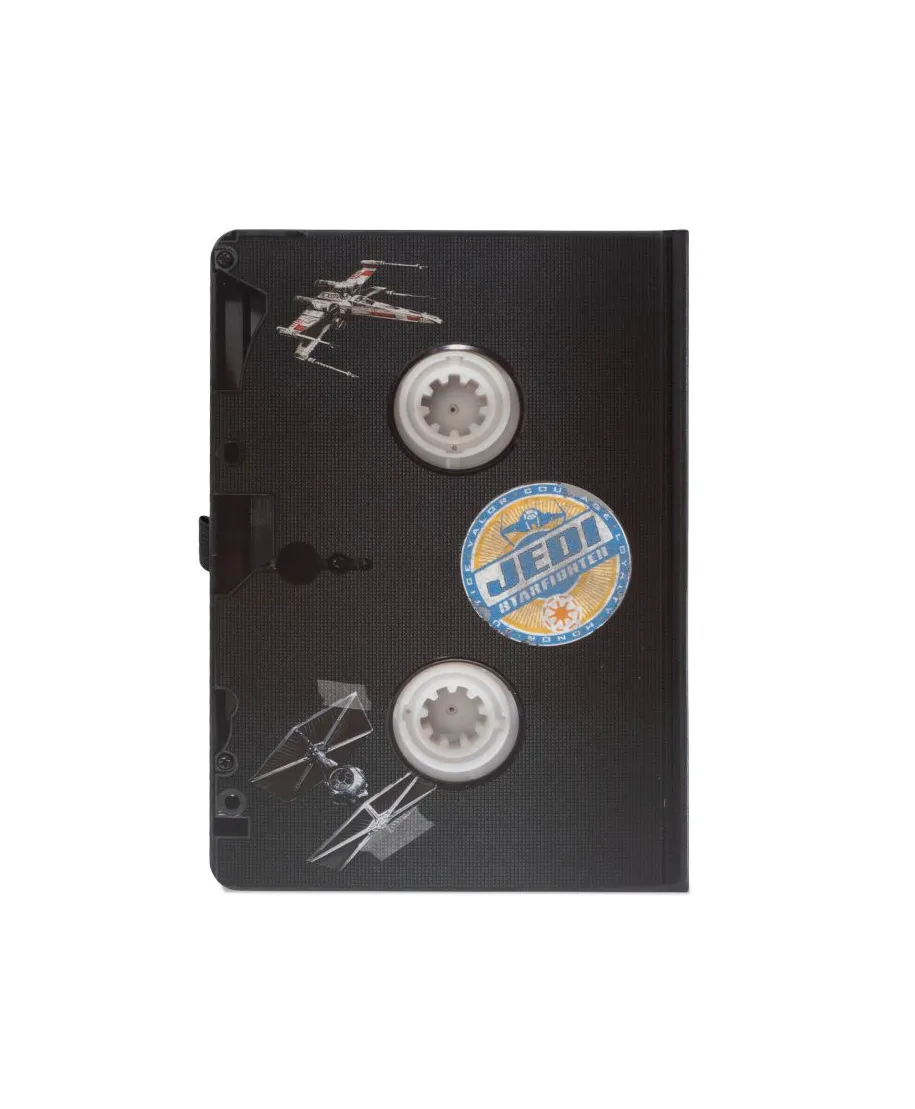 Notes Star Wars A New Hope VHS Świetny gadżet który wykorzystasz zarówno w szkole, jak i w pracy. Idealnie sprawdzi się też jako dziennik czy pamiętnik. Twarda okładka, zadrukowana fotografią o intensywnych i wyrazistych barwach. 120 kartek w szeroką linie ozdobione grafiką z głównego motywu. Zamykany na kolorową gumkę. Posiada oficjalną licencję producenta, to oryginalny gadżet! Wymiary zeszytu: 14,8x21 cm