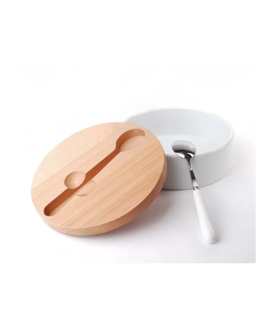 Cukiernica z łyżeczką - Ceramiczna - Okrągła - 14,7x6cm