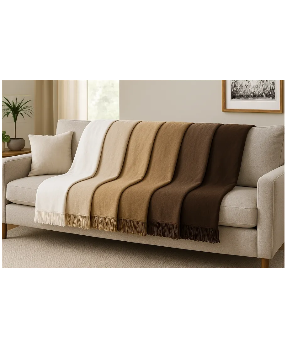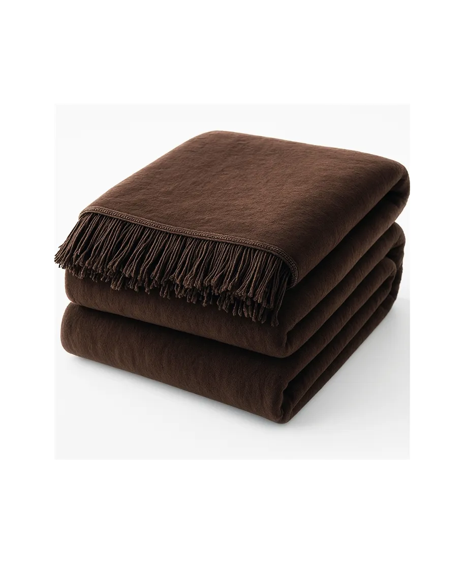 Koc elegancko wykończony frędzlami.