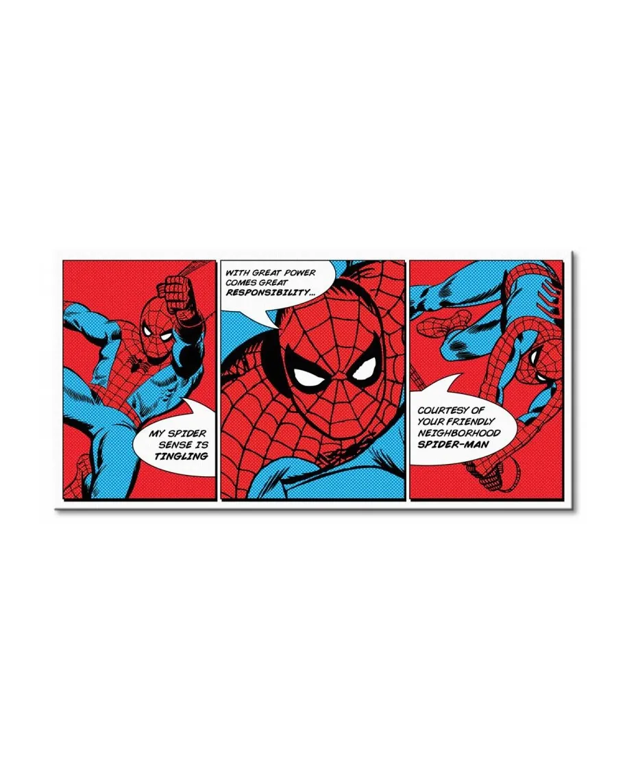 Oryginalny obraz na płótnie noszący nazwę Spider-Man (Triptych) .Autorstwa: nieznany Szukasz oryginalnego obrazu na ścianę ? Wybierz jeden z naszej kolekcji! Fantastyczne barwy,obrazy charakteryzuje wysokie nasycenie barw i ostrość,nie sposób oderwać od nich wzrok. Kolory obrazu utrzymują się przez długie lata. Płótno wysokiej jakości,obrazy wykonane na płótnie bawełnianym 300g/m2 są mocne i trwałe,świetnie rozkłada się na nich farba a struktura płótna jest naturalna. Lubisz produkty markowe ? obraz jest oryginalny, to oficjalne wydanie licencjonowanego producenta. Trwałe kolory,dzięki dodatkowo lakierowanej powierzchni kolory obrazów są żywe przez dziesięciolecia. Solidna rama,blejtrama na której naciągane jest płótno wykonana jest z naturalnego, sosnowego drewna.Jest mocna i gruba. Obraz jest trwały i solidny. Zadrukowane boki,każdy egzemplarz obrazu posiada zadrukowane boki,dzięki temu można powiesić go na ścianie bez dodatkowej oprawy. Jak zawiesić obraz na ścianie ?Nic prostszego ! Wystarczy gwóźdź w ścianie na którym opiera się górna listwa obrazu. Bezpieczna wysyłkaDbamy o bezpieczeństwo obrazów podczas transportu.Każda przesyłka z obrazem jest ubezpieczona a ten zapakowany jest w solidne, specjalnie zaprojektowane pudełko. Szczegóły techniczne:wydruk na płótnie bawełnianym 300g/m2sosnowe krosna o grubości 2 cm i szerokości 3,5 cmdruk cyfrowywymiary obrazu 100x50 cmmarka: Art Group