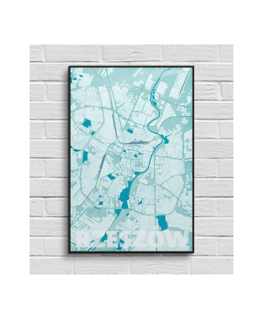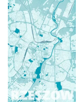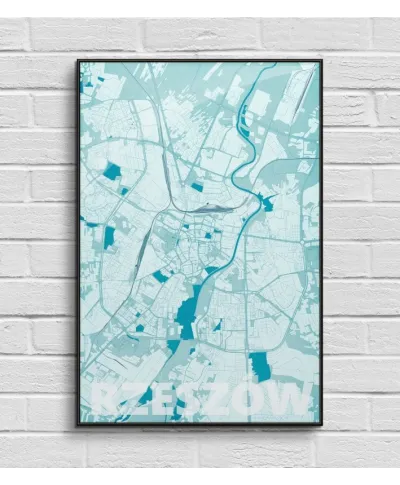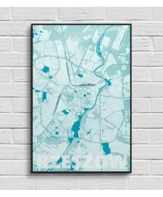 Plakat do salonu - Rzeszów - Błękitna mapa - 61x91,5 cm