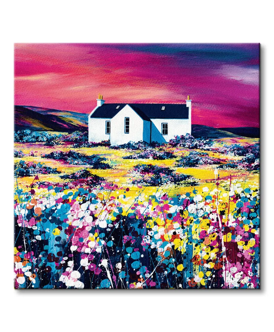 A Sky Of Pink - obraz na płótnie Naciągnięty na sosnowe krosna. Gotowy do zawieszenia na ścianę. Wykonany z najwyższą dbałością o detale. Obraz jest ostry a barwy nasycone. Ten egzemplarz posiada zadrukowane boki, nie trzeba go dodatkowo oprawiać. Płótno bawełniane na który został naniesiony obraz jest bardzo mocne i posiada ciekawą fakturę. Blejtrama wykonana jest natomiast z grubego drzewa sosnowego. Jest solidna, jej szerokość to 3,5 cm a grubość 2 cm. Kupując ten produkt masz pewność, że kupujesz z legalnego źródła i wspierasz artystów. Obraz jest oryginalny i posiada licencję. Lubisz wyróżniać się ciekawymi, ekskluzywnymi dekoracjami na ścianę? Ten obraz jest idealny dla Ciebie. Nikt nie przejdzie obojętnie obok niego, jest po prostu piękny. Dane techniczne Płótno bawełniane 300g/m2 Sosnowe krosna o grubości 2 cm i szerokości 3,5 cm Obraz zadrukowany cyfrowo