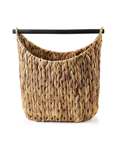 Kosz z uchwytem AMPARO 35x20x24 cm • Hiacynt wodny • Boho eko organizer na pledy, gazety, zabawki