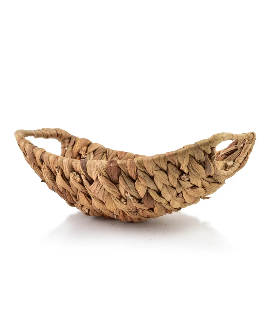 Koszyk AMPARO o wymiarach 24x16x6 cm to praktyczny, lekki i stylowy dodatek wykonany z naturalnego hiacyntu wodnego. Ręcznie pleciony, z unikalną strukturą, idealnie pasuje do wnętrz w stylu boho, eko, rustykalnym i skandynawskim.