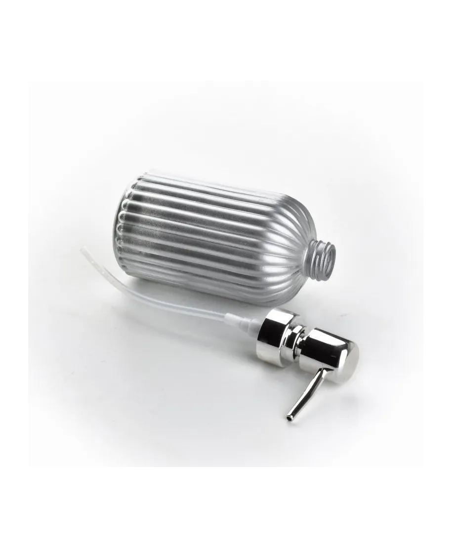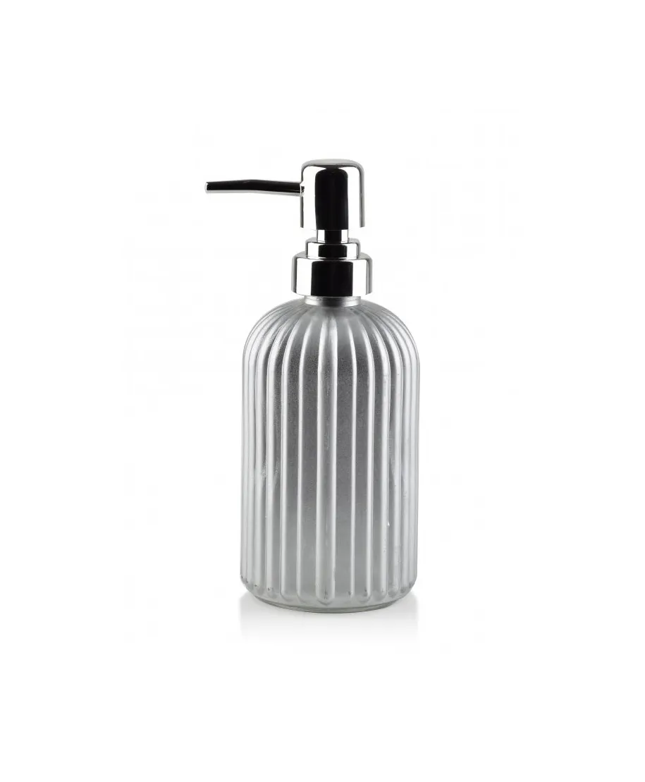 która ułatwia wydobycie się mydła na zewnątrz. Dozownik na mydło w płynie ARI SILVER cechuje się dokładnym wykonaniem. Idealny srebrny matowy pojemnik w pionowe tłoczone paski. Wybór dla osób szukających użytecznych produktów stanowiących jednocześnie elementy dekoracyjne łazienek. dozownik z pompką wysokość 19cm