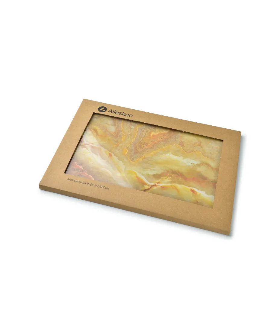 Deska szklana z kolekcji ARIA marki ALLESKEN to doskonałe połączenie funkcjonalności i eleganckiego designu. Wykonana z wysokiej jakości szkła, nie tylko jest wyjątkowo trwała, ale także łatwa w utrzymaniu czystości, co czyni ją idealną dla każdej nowoczesnej kuchni. Deska prezentuje się lekko i subtelnie, a jednocześnie jest odporna na odkształcenia i zarysowania, zachowując swój estetyczny wygląd przez długi czas. Antypoślizgowe stopy zapewniają stabilność podczas krojenia, a elementy ozdobne z kolekcji ARIA nadają desce wyjątkowy charakter, który wyróżni ją na tle standardowych akcesoriów kuchennych. Dzięki wymiarom deski, przygotowanie składników do różnorodnych potraw staje się niezwykle komfortowe, a jej uniwersalność umożliwia również wykorzystanie jej jako stylowej podstawki pod gorące naczynia lub efektowne prezentacji przekąsek podczas uroczystych przyjęć. wymiar: 20x30x0,4cm waga: 552g / 600g z opakowaniem opakowanie jednostkowe: eco box z okienkiem 30,5x20,5xh1cm