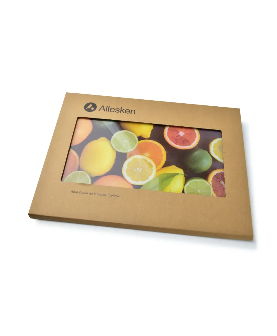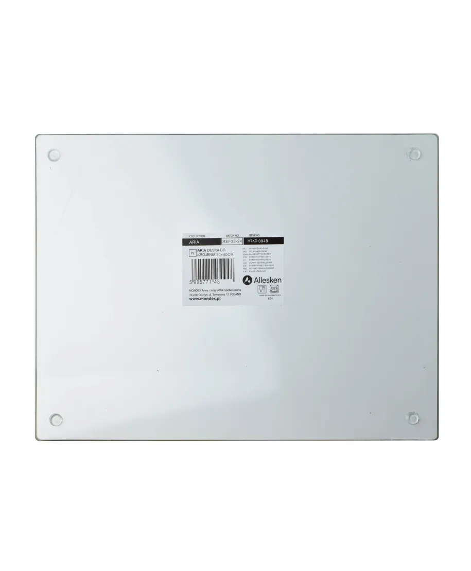 Deska szklana z kolekcji ARIA marki ALLESKEN to doskonałe połączenie funkcjonalności i eleganckiego designu. Wykonana z wysokiej jakości szkła, nie tylko jest wyjątkowo trwała, ale także łatwa w utrzymaniu czystości, co czyni ją idealną dla każdej nowoczesnej kuchni. Deska prezentuje się lekko i subtelnie, a jednocześnie jest odporna na odkształcenia i zarysowania, zachowując swój estetyczny wygląd przez długi czas. Antypoślizgowe stopy zapewniają stabilność podczas krojenia, a elementy ozdobne zkolekcji ARIA nadają desce wyjątkowy charakter, który wyróżni ją na tle standardowych akcesoriów kuchennych. Dzięki wymiarom deski, przygotowanie składników do różnorodnych potraw staje się niezwykle komfortowe, a jej uniwersalność umożliwia również wykorzystanie jej jako stylowej podstawki pod gorące naczynia lub efektowne prezentacji przekąsek podczas uroczystych przyjęć. wymiar: 40x30xh0,4cm waga: 1,144kg/1,232kg z opakowaniem opakowanie jednostkowe: eco box z okienkiem 30,5x40,5x1cm