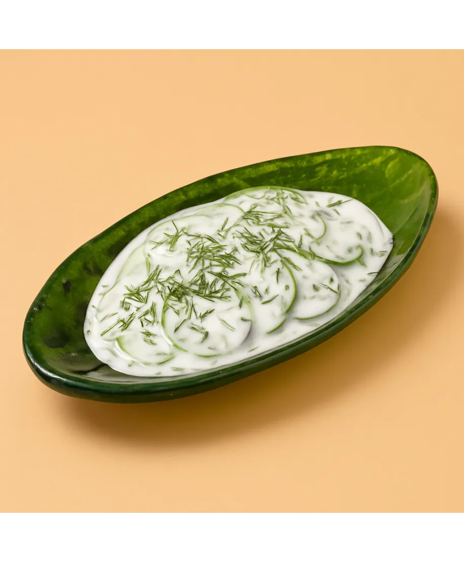 Naczynie ARIA FRESH o wymiarach 6,918,4x1,8cm to wąskie, podłużne szklane naczynie zaprojektowane w kształcie ogórka. Wykonane z formowanego szkła o intensywnie zielonej barwie, doskonale imituje naturalny wygląd świeżego ogórka . z delikatnie pofalowanymi krawędziami i charakterystycznym, organicznym konturem warzywa. Forma ta nadaje mu niepowtarzalnego uroku i dekoracyjnego charakteru.Naczynie świetnie sprawdza się jako talerzyk do serwowania przystawek, plasterków ogórka, oliwek, korniszonów, serów, orzeszków lub innych drobnych przekąsek. Ze względu na swój oryginalny kształt przyciąga wzrok i idealnie pasuje do stołów z aranżacją inspirowaną naturą, ogrodem lub kuchnią wiejską. Niska wysokość i wydłużona forma sprawiają, że doskonale nadaje się również jako podstawka do dodatków lub serwetek.Naczynie zostało wykonane ze szkła, dlatego jest nieprzystosowane do mycia w zmywarce oraz do użycia w kuchence mikrofalowej. Wymaga mycia ręcznego, z użyciem miękkiej gąbki i łagodnych detergentów, by zachować swój kolor i unikatowy kształt.To niewielkie, a zarazem wyjątkowe naczynie łączy funkcjonalność z humorem i stylowym podejściem do codziennego serwowania. Idealne dla osób ceniących kreatywne dodatki do stołu oraz oryginalne formy w wyposażeniu kuchni.