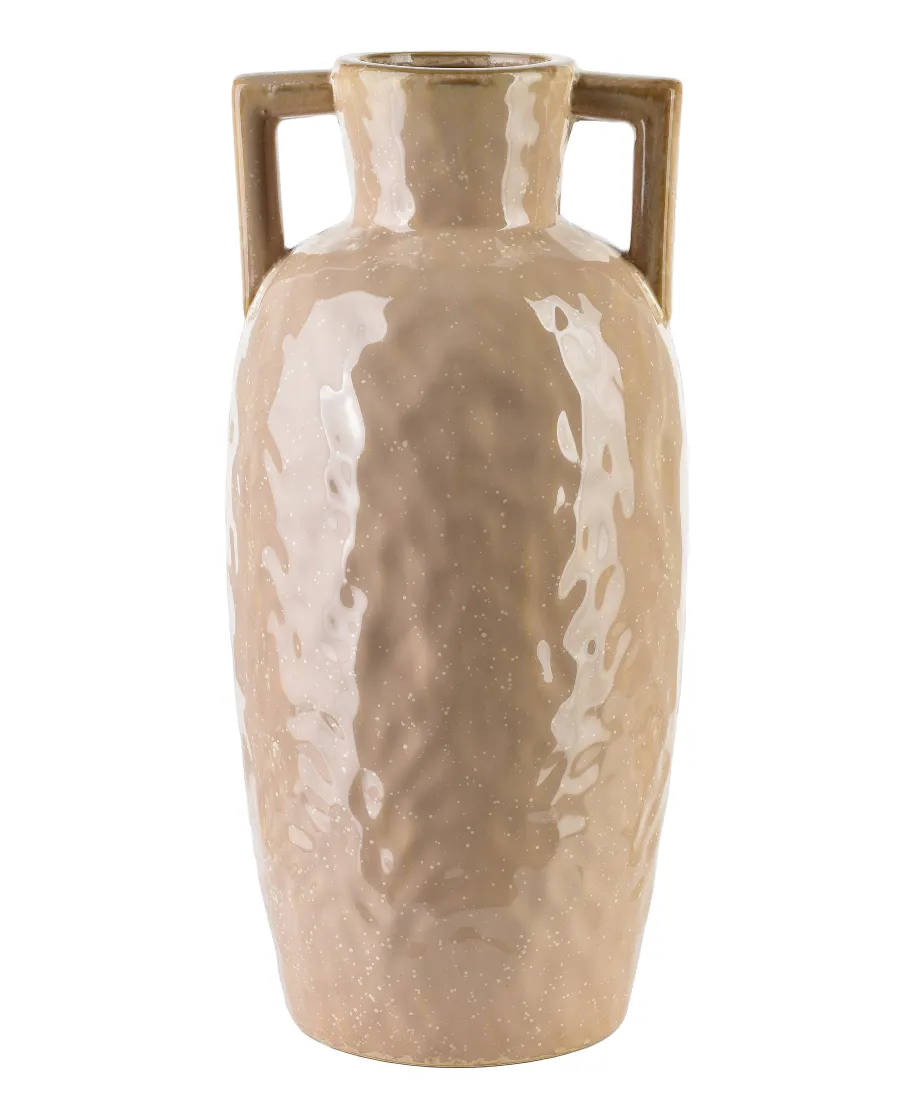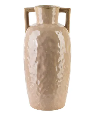 Stylowa ceramika z nutą klasyki i świeżości. Wazon ARINA BEIGE to wyjątkowa dekoracja, która łączy klasyczną formę z nowoczesnym wykończeniem. Jego subtelny beżowy wprowadza do wnętrza atmosferę spokoju i naturalnej harmonii, a dwa funkcjonalne uchwyty nadają mu charakter inspirowany stylem śródziemnomorskim czy vintage. Wyróżniający się design z praktycznym akcentem. Dzięki wymiarom 6,5x16,5x25cm i oryginalnej formie z uchwytami, wazon nie tylko pięknie prezentujesię jako ozdoba, ale również ułatwia codzienne użytkowanie. Uchwyty podkreślają jego dekoracyjny charakter, jednocześnie umożliwiając łatwe przenoszenie. Dekoracja, która mówi o dobrym guście. ARINA GREEN świetnie sprawdzi się zarówno w minimalistycznych aranżacjach, jak i we wnętrzach w stylu boho, retro czy natural.Może pełnić funkcję klasycznego wazonu na kwiaty lub dekoracyjnego naczynia stojącego solo na konsoli, komodzie czy stole. wymiary: 8x16x35cm waga:2,050kg średnica otworu: 6,5cm