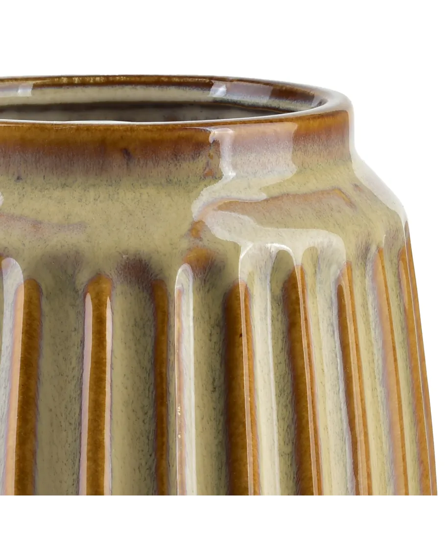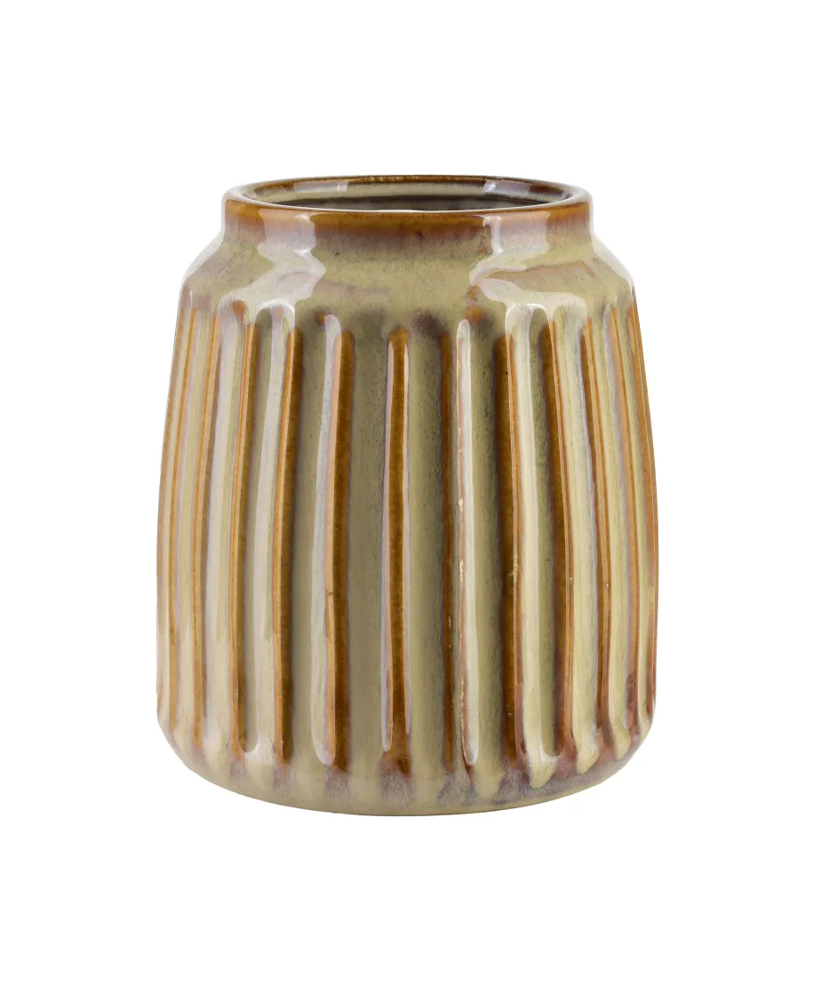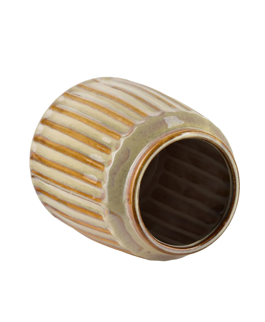 ARINA BEIGE to ceramiczny wazon-osłonka o wymiarach 11 x 15,5 x 18 cm, wyróżniający się eleganckim wzorem w postaci tłoczonych pionowych linii. Jasnobeżowy kolor sprawia, że łatwo dopasować go do różnych stylów wnętrz . od klasycznego po nowoczesny. Dzięki swojej formie może pełnić funkcję zarówno dekoracyjnego wazonu, jak i praktycznej osłonki na rośliny. Tłoczenia nadają mu charakteru i lekkości, a uniwersalny kształt pozwala na łatwe wkomponowanie w aranżację stołu, półki czy parapetu. To doskonały wybór dla osób ceniących estetyczne, a zarazem funkcjonalne dodatki do domu.wymiary: 11x15,5x18cmwaga: 1,08kgzapakowany jednostkowo w brązowy karton