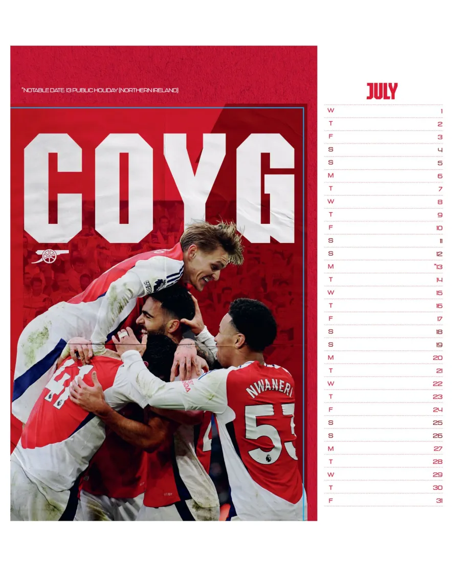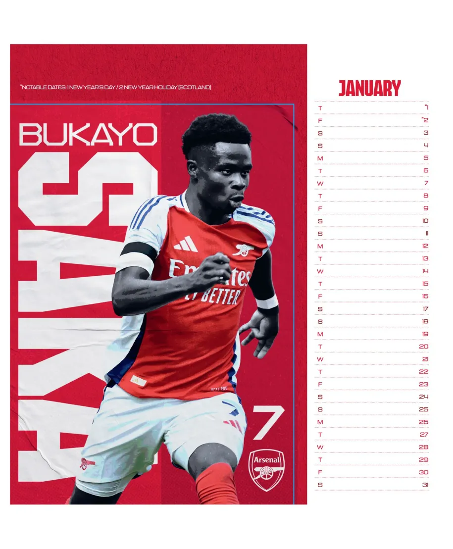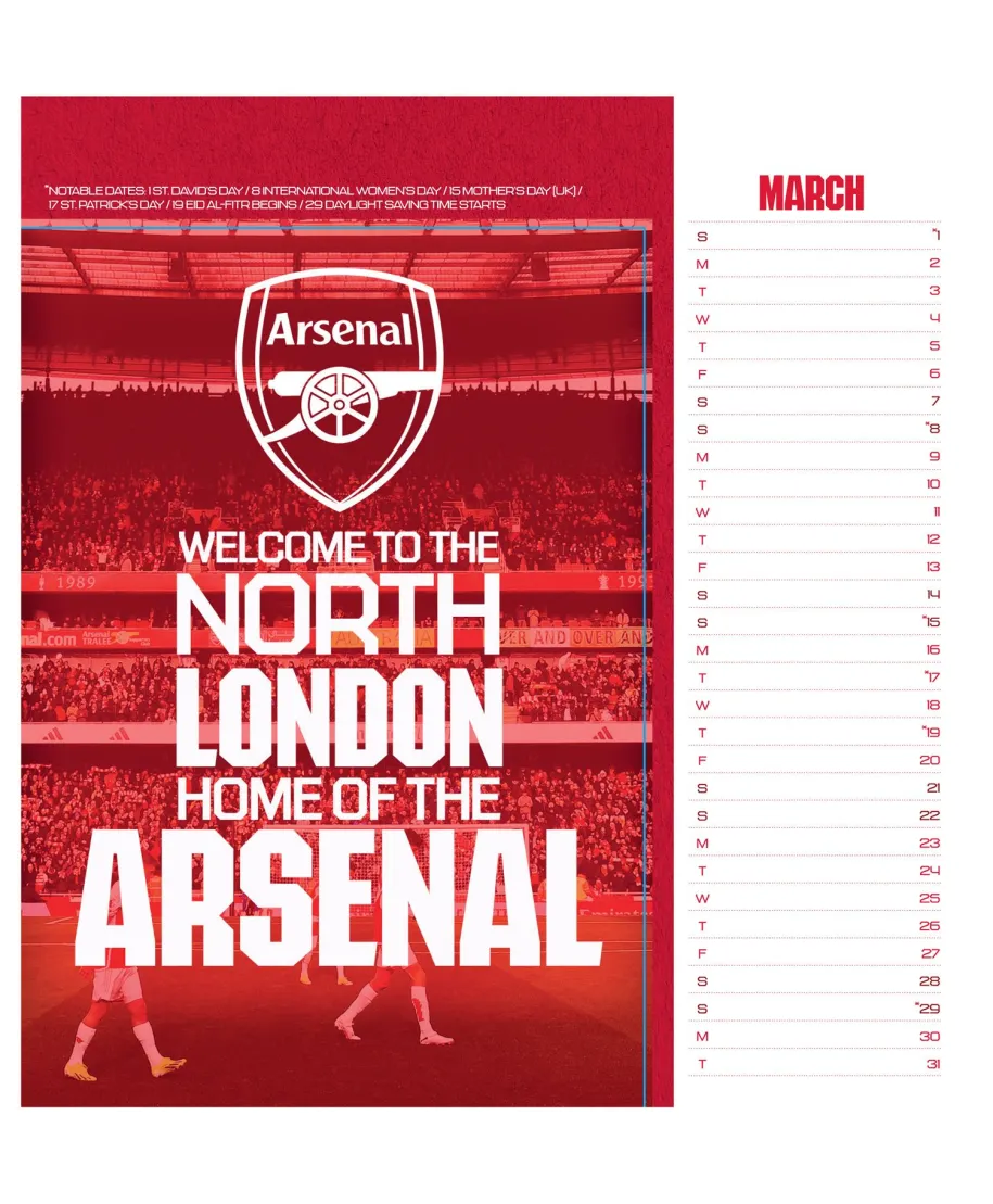 Kalendarz biurkowy Arsenal FC 2026 Spiralny kalendarz flip-through z logo i grafikami Arsenal FC - idealny, aby ozdobić biurko fana piłki. Miesięczne strony z wyraźną grafiką i sloganami klubu, łatwy w użyciu jako organizer biurowy. Szczegóły techniczne: Format: stojący kalendarz biurkowy (easel) Oprawa: spiralna 14 stron, w tym 12 miesięcznych ilustracji Design: karta na każdy miesiąc Grafika: styl klubowy Arsenal Licencjonowany produkt Oficjalna licencja Arsenal FC - oryginalny kalendarz klubowy.