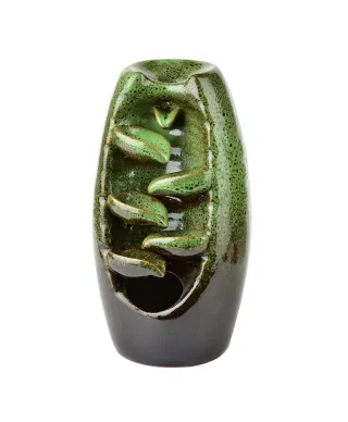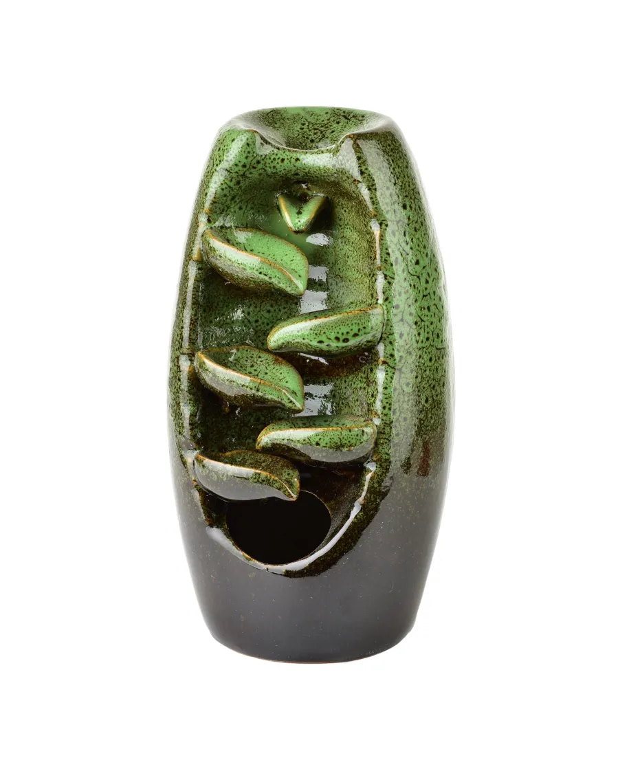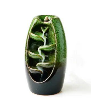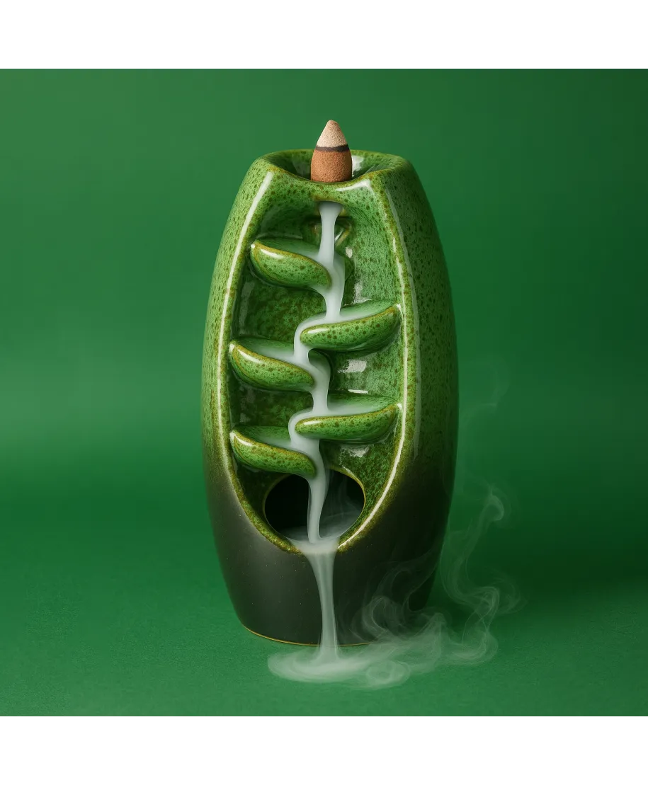 BACKFLOW Kominek ceramiczny. Kominek ceramiczny typu backflow to elegancki i relaksujący element dekoracyjny, który łączy funkcję aromaterapii z unikalnym efektem wizualnym. Dzięki specjalnej konstrukcji dym z kadzidełek spływaw dół niczym mgiełka wodospadu, tworząc hipnotyzujący widok... Wymiary i budowa Wysokość: 17 cm Szerokość i głębokość: 88cm Materiał: Wysokiej jakości ceramika (często szkliwiona) Wymaga specjalnych kadzideł stożkowych typu backflow z otworem u podstawy Dym zamiast unosić się do góry, spływa kaskadowo w dół przez wyprofilowane kanały ceramiczneEfekt: Przypomina płynącą mgłę, wodospad lub dym wijący się po schodach. Relaksacja i medytacja: Doskonały do sesji jogi, masażu, wieczornego relaksu Dekoracja: Idealny element wystroju salonu, sypialni, biura, Kominek należy ustawiać na stabilnej, niepalnej powierzchniZalecane jest używanie na podkładce lub tacy, ponieważ dym może zostawiać osadProdukt przeznaczony do użytku wewnętrznego 8x8x17cm