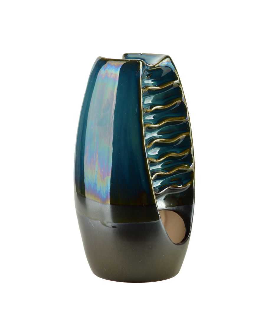 Ceramiczny kominek zapachowy typu BACKFLOW marki MONDEX since 1986 to wyjątkowy element dekoracyjny, który łączy w sobie funkcję tradycyjnej aromaterapii z niezwykle widowiskowym efektem wizualnym. Dzięki precyzyjnie zaprojektowanej konstrukcji oraz zastosowaniu specjalnych kadzidełek stożkowych, dym nie unosi się ku górze, lecz spływa kaskadowo w dół, tworząc hipnotyzujący widok przypominający płynącą mgłę lub miniaturowy wodospad. Produkt o wymiarach 8x8x17 cm został wykonany z wysokiej jakości ceramiki, która w górnej części zachwyca głębokim połyskiem, natomiast w dolnej posiada eleganckie, matowe wykończenie. Jego stylowa forma i kolorystyka sprawiają, że stanowi on doskonały dodatek do nowoczesnych salonów, gabinetów spa czy kącików do medytacji, wprowadzając do wnętrza atmosferę spokoju i relaksu. Kominek jest niezwykle prosty w obsłudze, jednak dla uzyskania najlepszego efektu wodospadu zaleca się używanie go w pomieszczeniach wolnych od przeciągów oraz ustawienie na stabilnej, niepalnej powierzchni