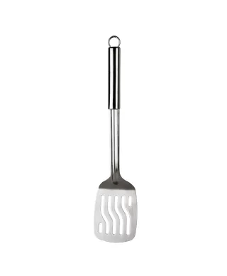 Łopatka BASIC KITCHEN o długości 36,5 cm została wykonana z wysokiej jakości stali nierdzewnej, co gwarantuje trwałość, odporność na wysokie temperatury oraz łatwość czyszczenia. Idealnie sprawdza się podczas smażenia, przewracania potraw na patelni czy nakładania dań. Ergonomiczny kształt zapewnia wygodę użytkowania, a solidna konstrukcja pozwala na komfortową pracę nawet z cięższymi składnikami. Prosty i elegancki design sprawia, że łopatka pasuje do każdej kuchni, łącząc funkcjonalność z estetyką.długość: 36,5cm waga: 0.087kg