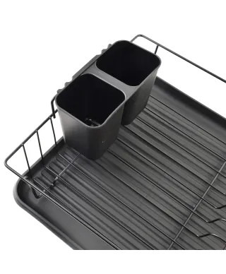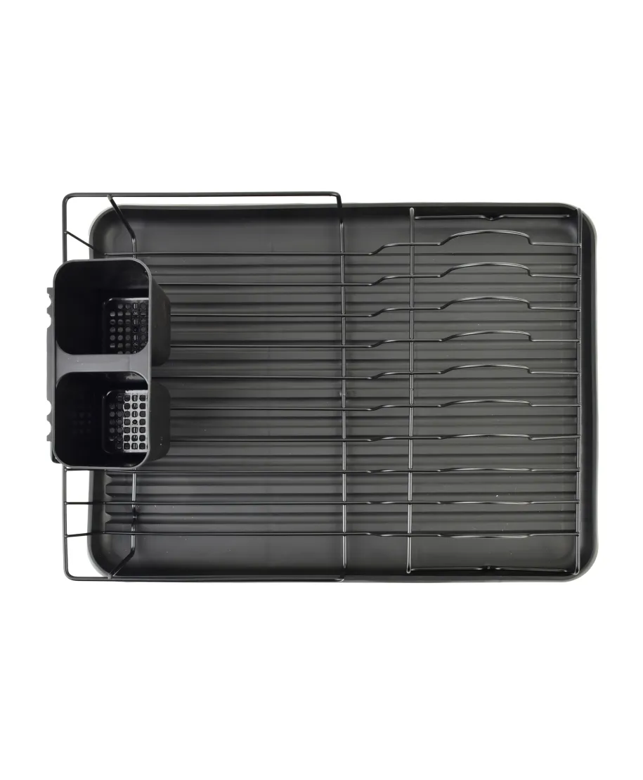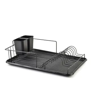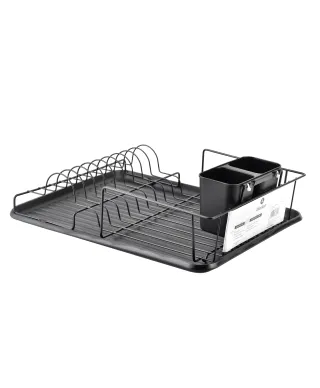 Ociekacz na naczynia z serii BASIC KITCHEN to praktyczne i stylowe rozwiązanie dokażdej kuchni. Wykonany z czarnego metalu w kolorze czarnym, zapewnia trwałość i elegancki wygląd, pasujący zarówno do nowoczesnych, jak i klasycznych aranżacji wnętrz.Wyposażony w czarną podstawkę z tworzywa sztucznego, skutecznie odprowadza wodę, pomagając utrzymać porządek na blacie. Dodatkowo posiada specjalny ociekacz na sztućce, co ułatwia organizację naczyń po umyciu. Dzięki swoim wymiarom 42,5x31,5x13,4cm daje dużo miejsca na talerze, kubki i inne naczynia, jednocześnie pozostając kompaktowym i łatwym do dopasowania w kuchennejprzestrzeni. To funkcjonalne i estetyczne akcesorium, które usprawni codzienne zmywanie naczyń. wymiary: 42,5x31,5x13,4cm waga:664g