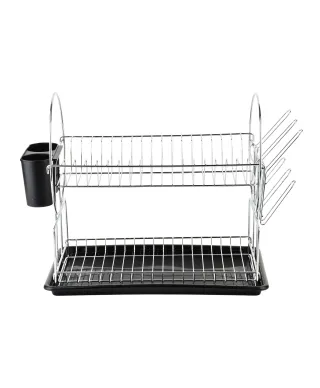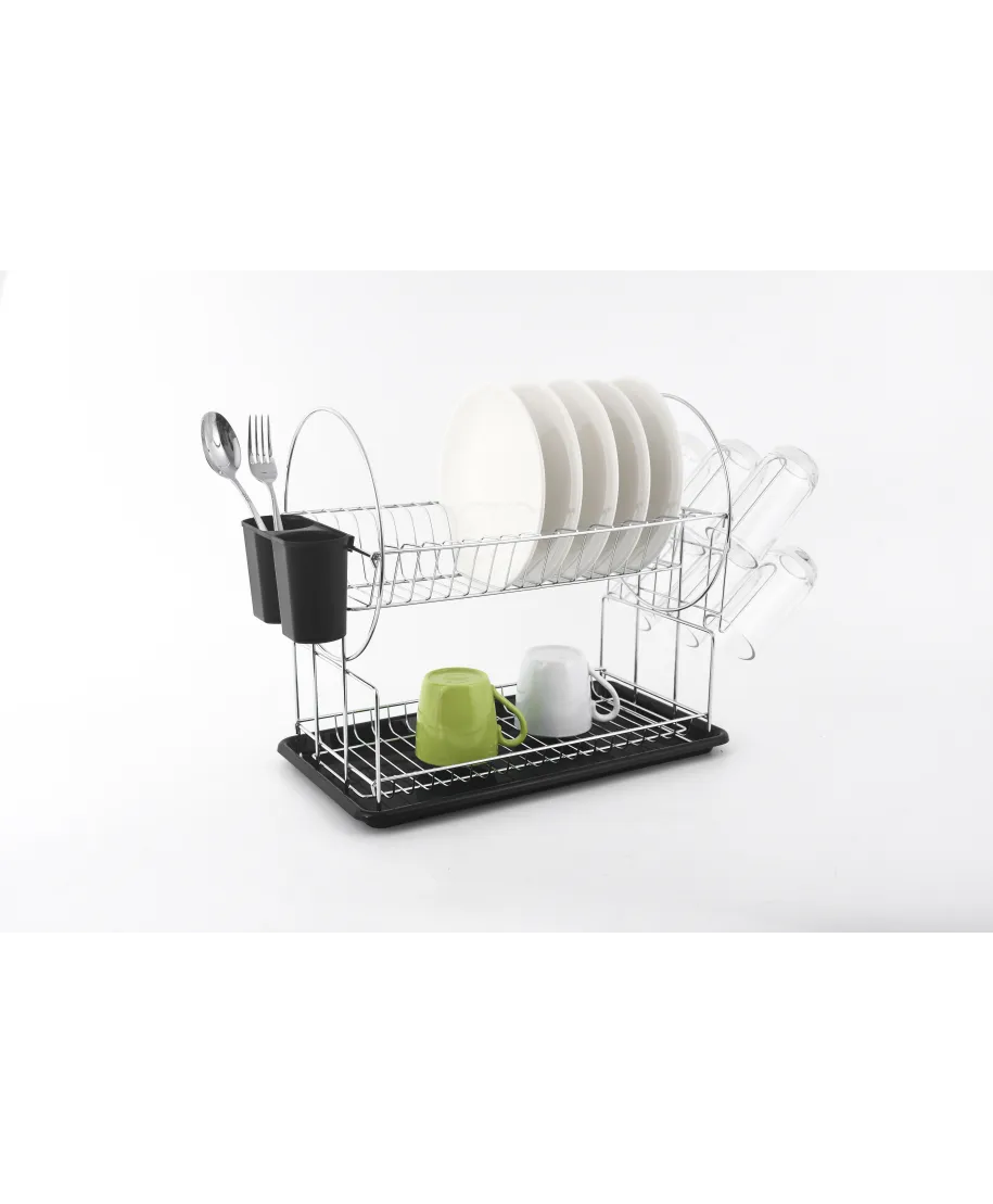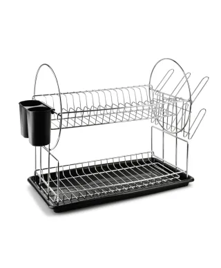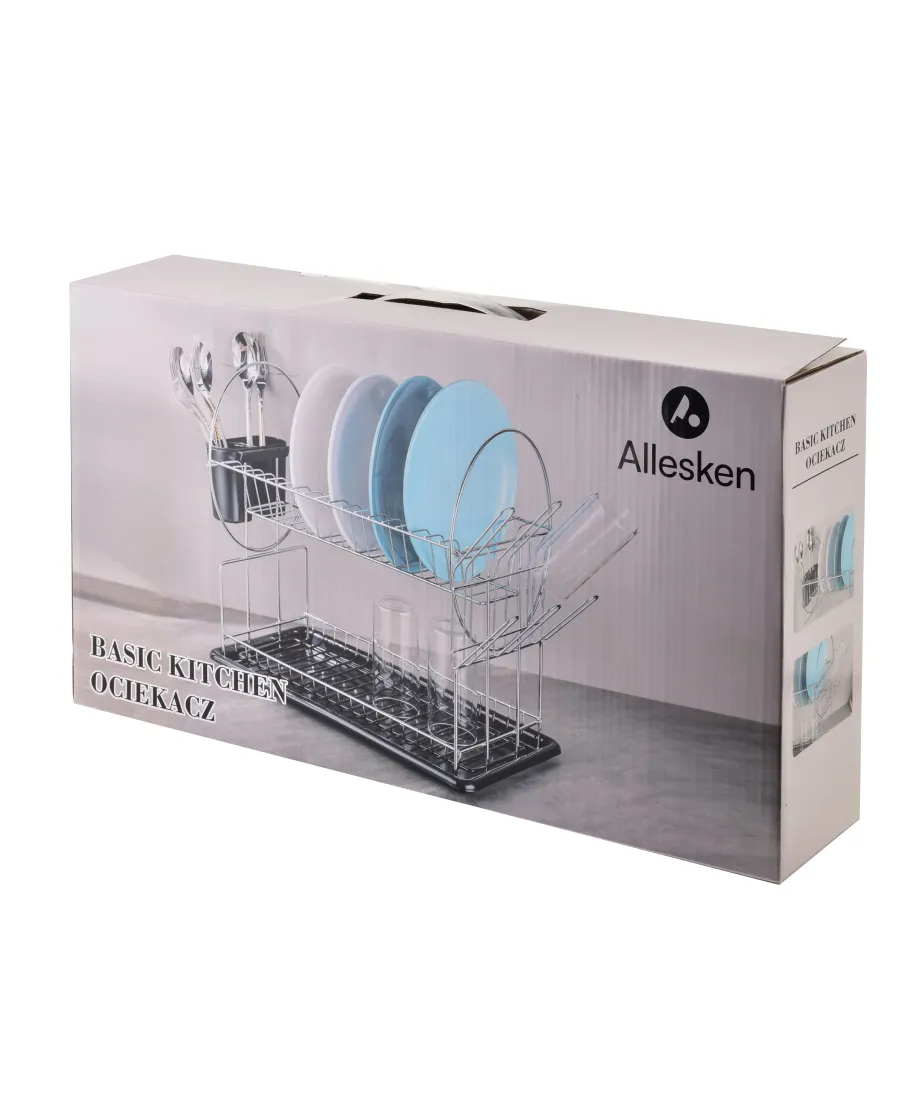 Dwupiętrowy ociekacz na naczynia z serii BASIC KITCHEN.Posiada chromowany stelaż i czarną podstawkę.Ociekacz na naczynia z serii BASIC KITCHEN to praktyczne i stylowe rozwiązanie dokażdej kuchni. Wykonany z metalu w kolorze srebrnym, zapewnia trwałośćtrwałość i elegancki wygląd, pasujący zarówno do nowoczesnych, jak i klasycznych aranżacji wnętrz.Wyposażony w czarną podstawkę z tworzywa sztucznego, skutecznie odprowadza wodę, pomagając utrzymać porządek na blacie. Dodatkowo posiada specjalny ociekacz na sztućce, co ułatwia organizację naczyń po umyciu. Dzięki swoim wymiarom 51x23,5x36,5CM psiada przestrzeń na talerze, kubki i inne naczynia, jednocześnie pozostając kompaktowym i łatwym do dopasowania w kuchennejprzestrzeni. To funkcjonalne i estetyczne akcesorium, które usprawni codzienne zmywanie naczyń. wymiary: 51x23,5x36,5cmwaga:1,23kg