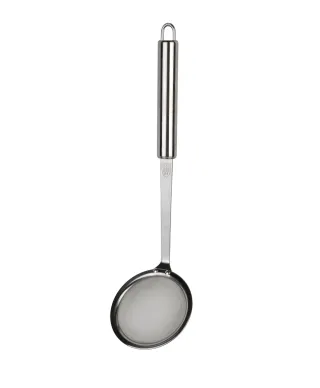 Sitko z serii BASIC KITCHEN wykonane zostało z wysokiej jakości stali nierdzewnej 18/10, co zapewnia trwałość, odporność na korozję oraz łatwość w utrzymaniu czystości. Wyposażone w wygodny uchwyt, doskonale leży w dłoni i ułatwia codzienne czynności kuchenne, takie jak płukanie warzyw, odsączanie makaronu czy przesiewanie mąki. Klasyczny, minimalistyczny design sprawia, że sitko wpisuje się w stylistykę każdej kuchni, łącząc funkcjonalność z estetyką. To niezastąpione narzędzie dla każdego, kto ceni sobie wygodę i solidne wykonanie.średnica: 8,2cm