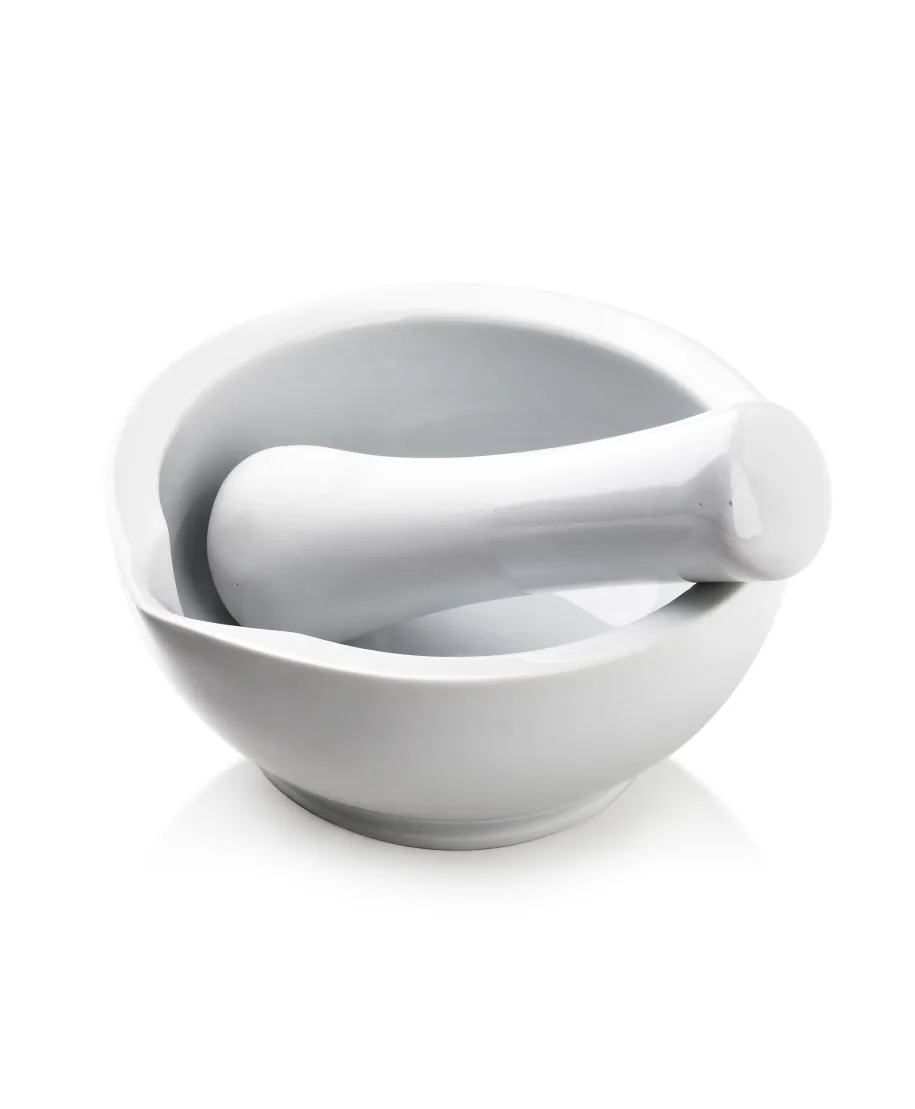 Możdzierz porcelanowy z serii BASIC.\Moździerz jest niezbędnym elementem wyposażenia każdej kuchni. Dzięki niemu\możesz przygotować wiele aromatycznych i pysznych dań. Uniwersalny wygląd sprawia, że pasuje praktycznie do każdego wystroju kuchni. Produkt jest bardzo łatwy w utrzymaniu czystości. Wykonany z najwyższej jakości materiałów odpornych na uszkodzenia. Dzięki niewielkiemu rozmiarowi nie zajmie dużo miejsca w naszej kuchni i z pewnością będzie ozdobą w Twojej kuchni! Produkt przeznaczony do kontaktu z żywnością.\Materiał: porcelana\\II GATUNEK\\wymiary: 14xh6.5cm\długość tłuczka: 14cm\szerokość: 4cm