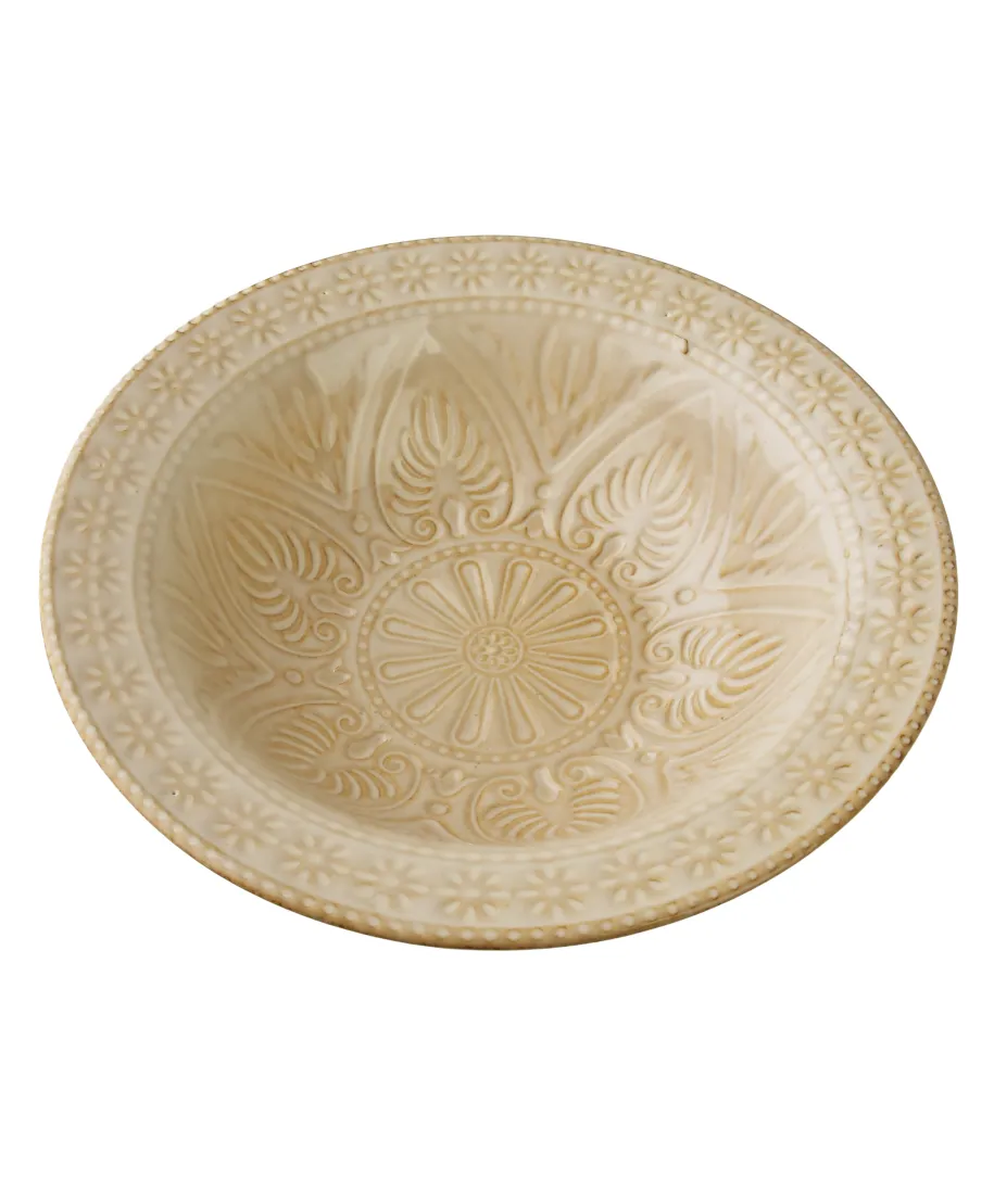 Miska,talerz BASIC NATURE o wymiarach 20,5x20,5x6 cm i pojemności 500 ml to eleganckie i wszechstronne naczynie stworzone z myślą o serwowaniu past, zup oraz dań jednogarnkowych. Jej charakterystyczny design łączy w sobie funkcjonalność głębokiej miski z elegancją talerza, dzięki czemu potrawy prezentują się wyjątkowo apetycznie. Wnętrze w odcieniu beżupodkreślone jest subtelnym tłoczonym wzorem, który dodaje całości naturalnego uroku i unikalnego charakteru. Stonowana kolorystyka inspirowana naturą sprawia, że naczynie pięknie komponuje się z różnymi aranżacjami stołu, wnosząc do nich elegancję i świeżość. Solidne wykonanie gwarantuje trwałość i komfort użytkowania, a wyjątkowa forma czyni tę miskę.talerz praktycznym i stylowym elementem codziennej zastawy.