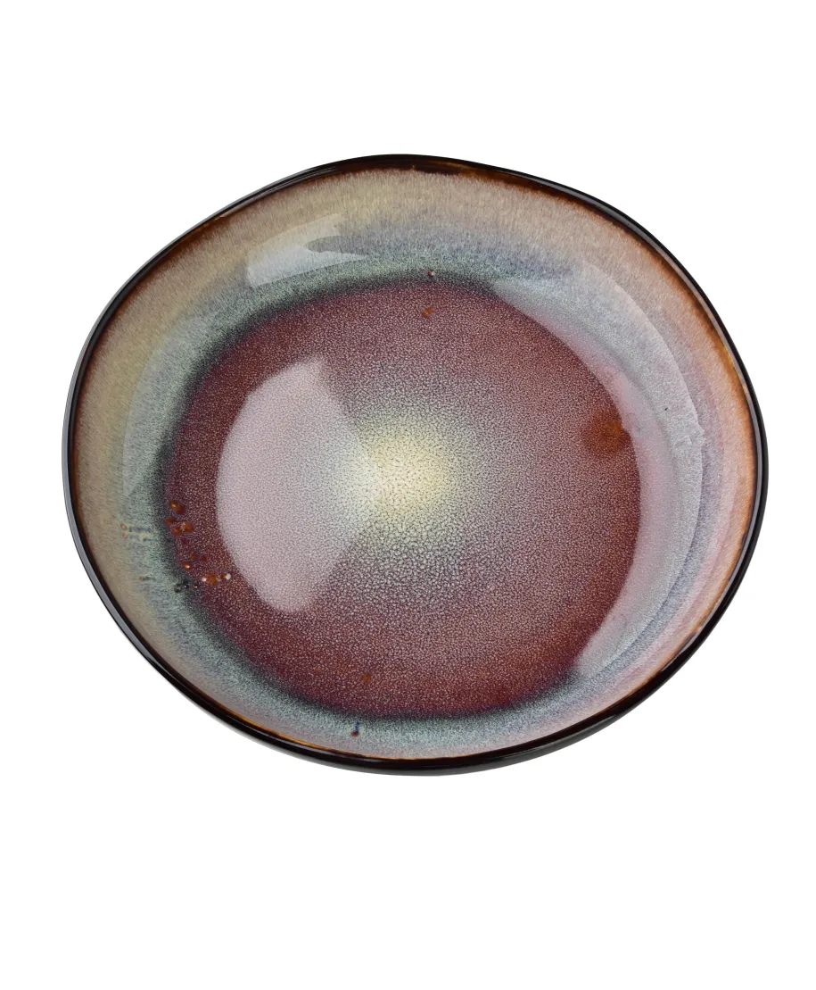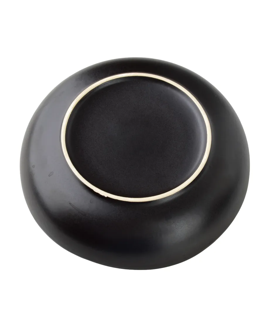 Talerz głęboki z serii BASIC NATURE o pojemności 700 ml i wymiarach 22,5 x 22,5 x 5 cm to wyjątkowe naczynie, które łączy nowoczesny design z artystycznym wykończeniem. Wykonany z wysokiej jakości ceramiki, wyróżnia się kontrastowym zestawieniem . na zewnątrz pokryty jest elegancką, matową czernią, natomiast wewnątrz zdobi go efektowna feria barw, nadająca mu niepowtarzalnego charakteru. Taka kompozycja sprawia, że każdy egzemplarz wygląda unikatowo i przyciąga wzrok na stole. Pojemność i głęboka forma talerza czynią go idealnym do serwowania zup, makaronów, dań jednogarnkowych czy sałatek, a jednocześnie podkreślają estetykę podawanych potraw. To naczynie, które łączy praktyczność z dekoracyjnością, stając się nie tylko elementem zastawy, ale również oryginalnym akcentem aranżacyjnym, który wprowadza do stołu elegancję i odrobinę artystycznej swobody.