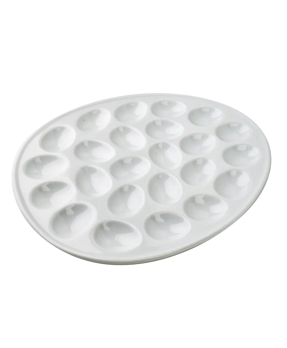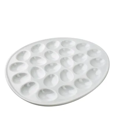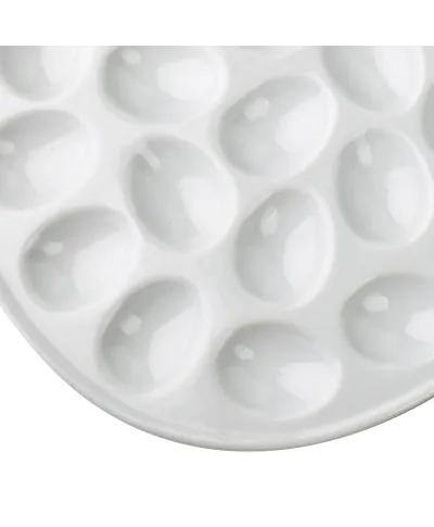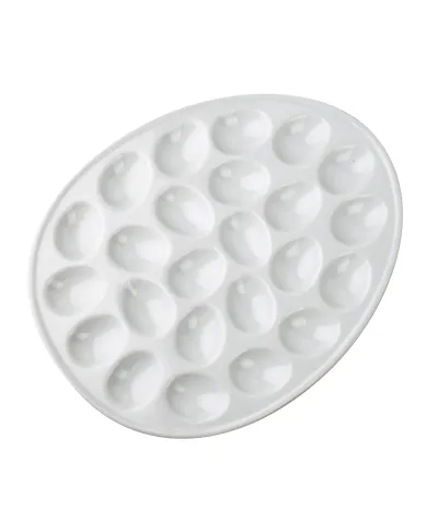 Praktyczny i efektowny w formie, talerz na jajka BASIC marki MONDEX został zaprojektowany z myślą o serwowaniu większej ilości przystawek w elegancki i uporządkowany sposób. Posiada 24 wyprofilowane zagłębienia, które umożliwiają stabilne ułożenie gotowanych lub faszerowanych jajek.Dzięki dużym wymiarom 35 x 28 cm, talerz doskonale sprawdzi się podczas spotkań rodzinnych, wielkanocnych śniadań, przyjęć i bufetów. Owalna forma dodaje mu dekoracyjnego charakteru, jednocześnie ułatwiając podanie większej porcji w wygodny sposób.Cechy produktu:Materiał: porcelanaWymiary: 35 x 28 cm, owalna forma z 24 miejscami na jajkaPojemność: 24 sztuki, idealny na większe przyjęciaDesign: klasyczny, neutralny, pasujący do różnorodnych aranżacji stołuZastosowanie: do serwowania gotowanych jajek, jajek faszerowanych lub przystawekPrzeznaczenie:Do użytku podczas świąt, przyjęć okolicznościowych, rodzinnych spotkań, a także jako element większej zastawy stołowejProdukt drugiego gatunku, co oznacza, że może posiadać drobne niedoskonałości wizualne lub minimalne różnice względem wzorca, nie wpływające na jego użytkowanie.