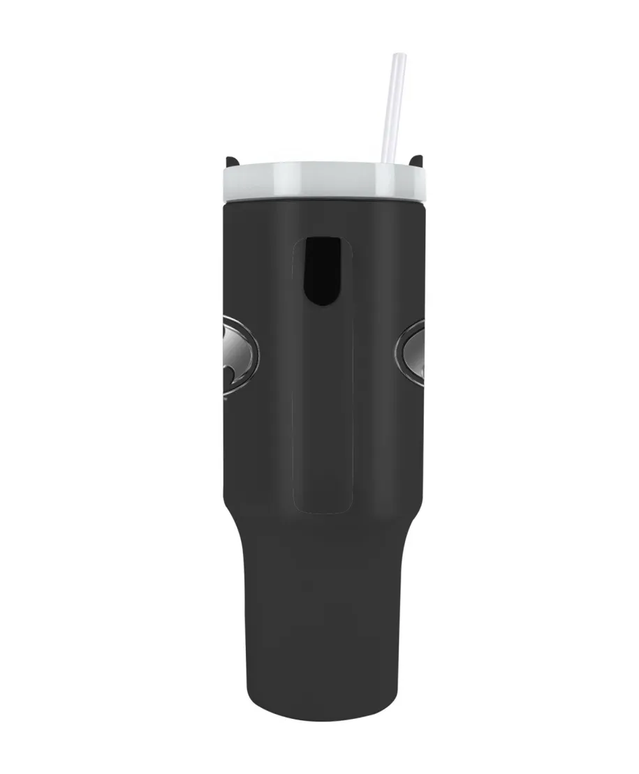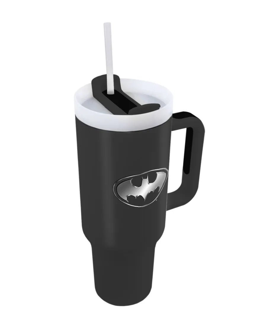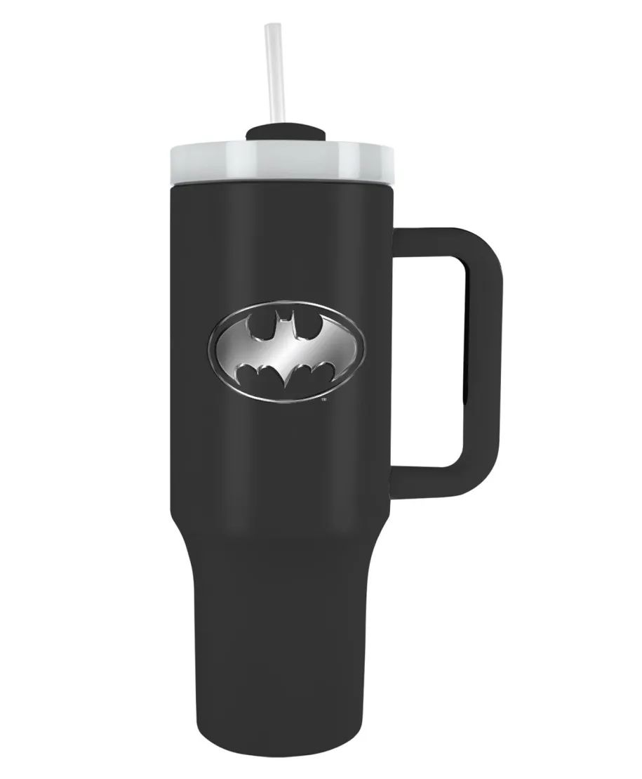 Batman Bat Emblem - kubek termiczny z uchem Termiczny kubek z kultowym symbolem Batmana. Dzięki pojemności 1140 ml i izolacji podwójnych ścianek, idealny do codziennego użytku. Trwały produkt na licencji DC Comics. Szczegóły techniczne: Pojemność: 1140 ml Izolacja: Podwójne ścianki Materiał: Wysokiej jakości tworzywo Wzór: Batman Bat Emblem Licencjonowany produkt Oryginalny gadżet DC Comics, idealny dla sklepów z akcesoriami superbohaterskimi.
