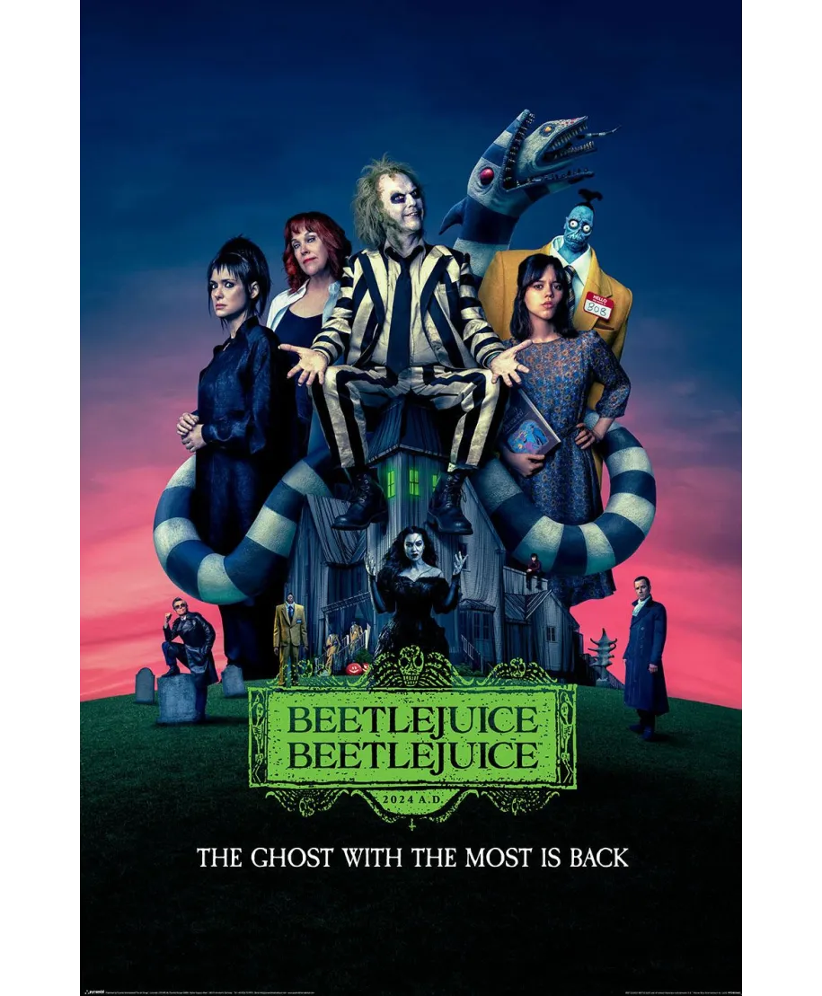 Oryginalny plakat na ścianę Beetlejuice 2 Plakaty wyróżniają się rewelecyjną jakością, intensywnymi i wyrazistymi barwami. Papiergruby i trwały, plakaty świetnie układają się w ramach za szybą. Produkty posiadają oryginalną licencję producenta, to ich oficjalne wydanie. Plakaty posiadają matową powierzchnię, dzięki czemu nie odbija się od nich intensywne światło. Szczegóły techniczne: wydruk na mocnym i grubym papierze 150g/m2 wymiary plakatów: 61x91,5 cm