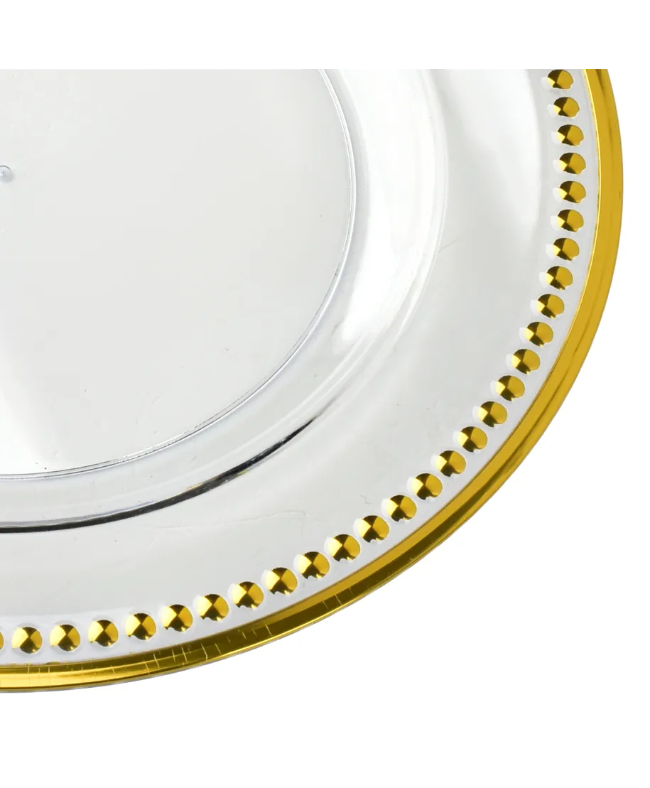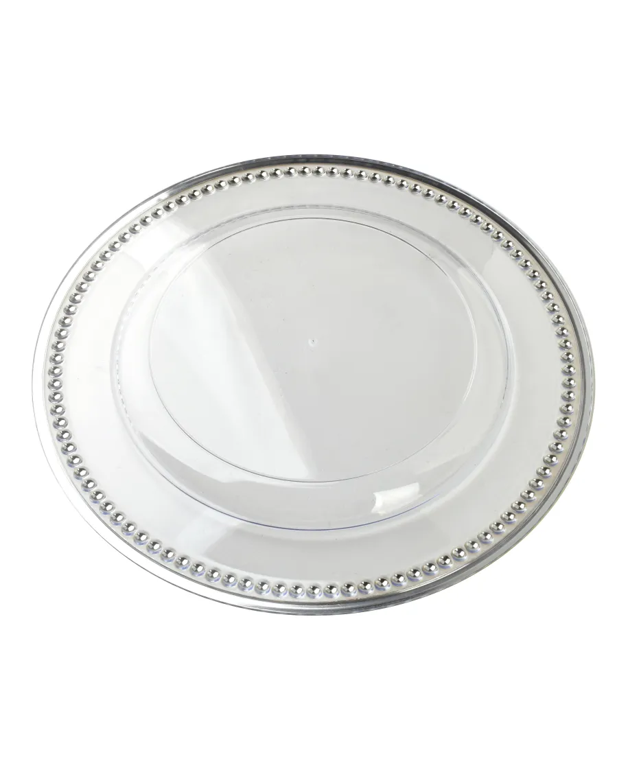 BLANCHE CLEAR . podtalerz dekoracyjny Klasa i blask na Twoim stoleWprowadź elegancję do każdej aranżacji stołu dzięki podtalerzowi BLANCHE CLEAR . transparentnej dekoracji, która doda szyku zarówno codziennym, jak i wyjątkowym chwilom. Wykonany z trwałego tworzywa o szklanym efekcie, podtalerz łączy w sobie subtelność i ponadczasowy styl.Poznaj zalety, które Cię zachwycą:Stylowa oprawa każdego posiłku . podtalerz podkreśla elegancję zastawy i tworzy spójną, wyrafinowaną kompozycję na stole.Przezroczysty design . pasuje do każdego koloru i stylu naczyń . od klasycznych po nowoczesne.Lekki, ale trwały . wykonany z wysokiej jakości tworzywa imitującego szkło . piękny efekt bez obaw o stłuczenie.Dekoracja i ochrona . podtalerz chroni blat przed gorącymi naczyniami i zabrudzeniami, jednocześnie dodając uroku całej aranżacji.Wszechstronne zastosowanie . idealny na święta, wesela, przyjęcia, ale też na co dzień . zawsze, gdy chcesz dodać eleganckiego akcentu.Wymiary: 33 cm średnicy x 1,5 cm wysokościMateriał: wysokiej jakości tworzywo sztuczneKolor: transparentny . pasuje do każdej aranżacji