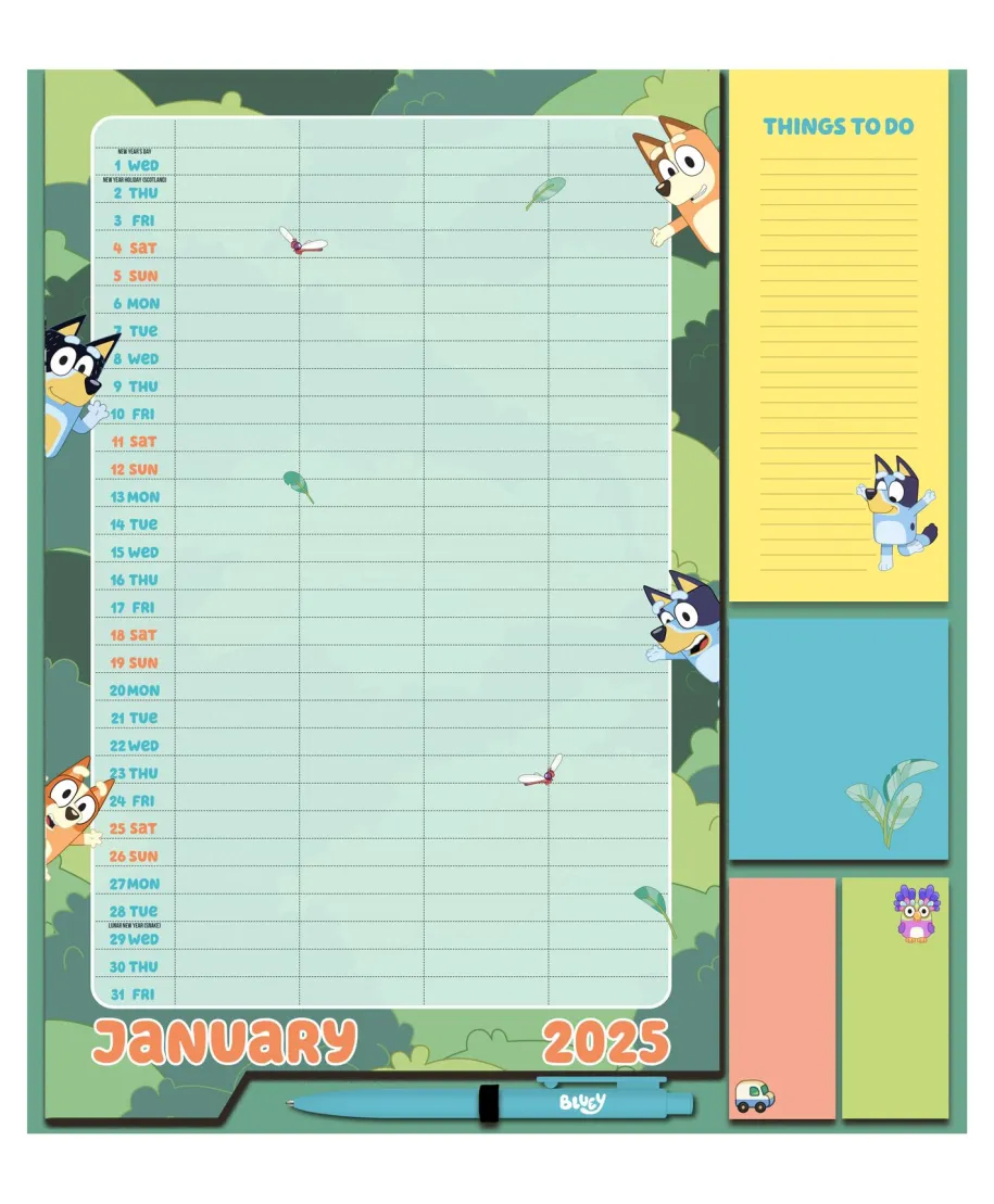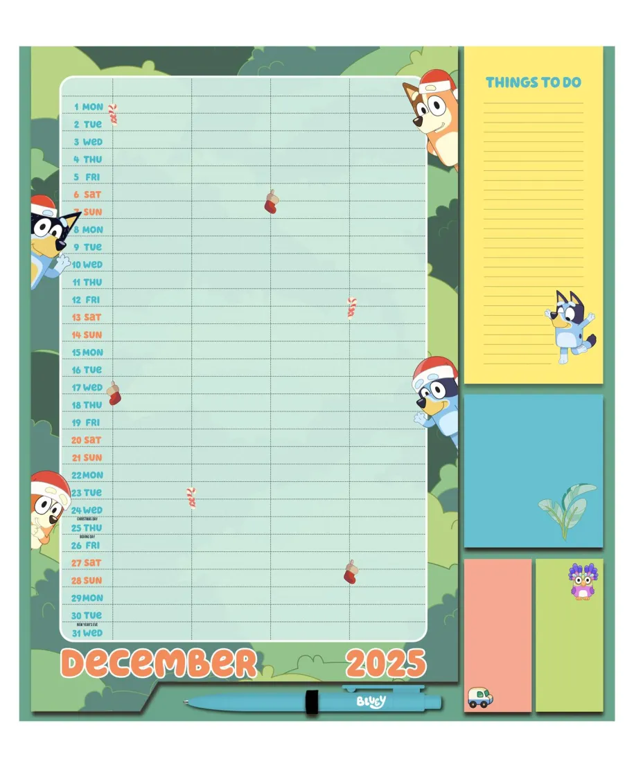 Bluey planer ścienny na 2026 rok Miesięczny planer ścienny 2026 z grafikami postaci z serialu Bluey. Format kompaktowy 34 × 34 cm, układ z czterema kolumnami idealnie sprawdzi się do rodzinnego planowania lub zorganizowania wydarzeń. Trwała oprawa zszywkowa i przejrzysty layout. Zakres: 12 miesięcy Układ: planner z czterema kolumnami Format: 34 × 34 cm Oprawa: zszywkowa