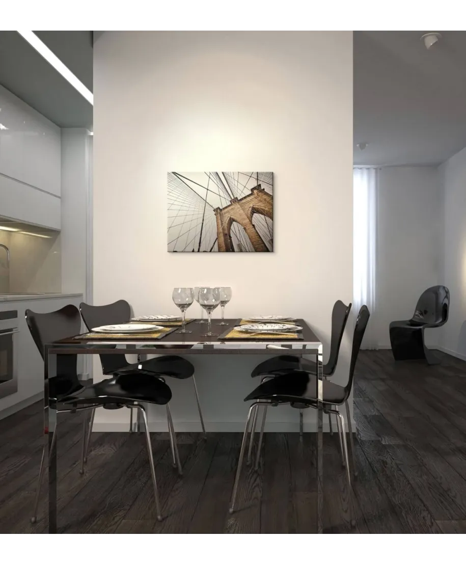 Oryginalny obraz na płótnieBrooklyn Bridge Pylon Oryginalny i licencjonowany obraz na płótnie idealny na każdą ścianę. Nasze obrazy wyróżniają: Fantastyczne barwy Wysokie nasycenie barw i ostrość, kolory utrzymują się przez długie lata. Płótno wysokiej jakości Płótno poliestrowe 300g/m2 jest trwałe i mocne, jego struktura jest naturalna. Trwałe kolory, Dodatkowo lakierowana powierzchnia sprawia, że kolory są żywe przez dziesięciolecia. Solidna rama, Wykonana jest z naturalnego, sosnowego drewna, jest mocna i gruba a obraz solidny i wytrzymały. Zadrukowane boki, obrazy posiadają zadrukowane boki, nie potrzebują żadnej dodatkowej oprawy. Szczegóły techniczne: wydruk na płótnie poliestrowym 220g/m2 sosnowe krosna o grubości 2 cm i szerokości 3,5 cm druk cyfrowy