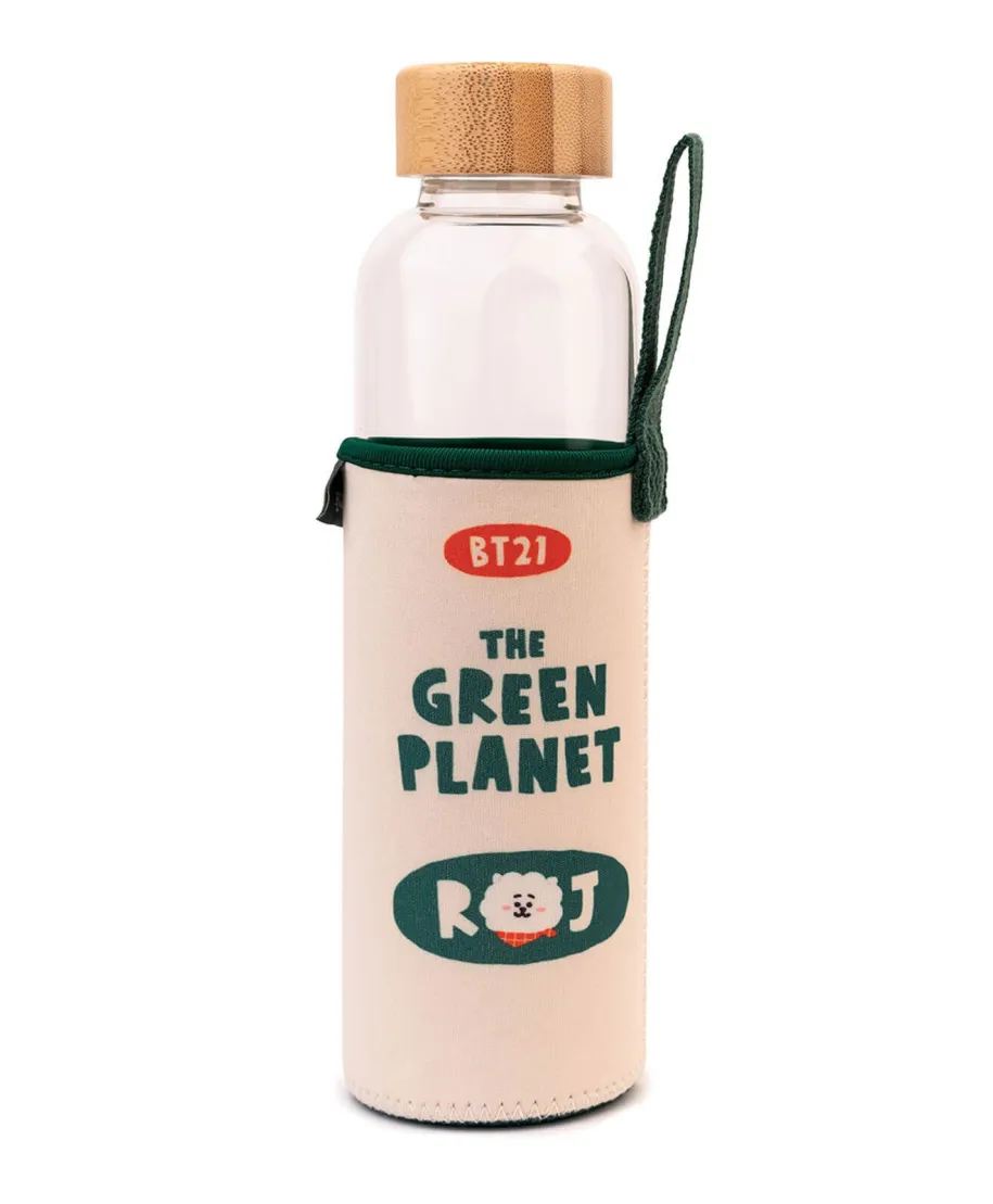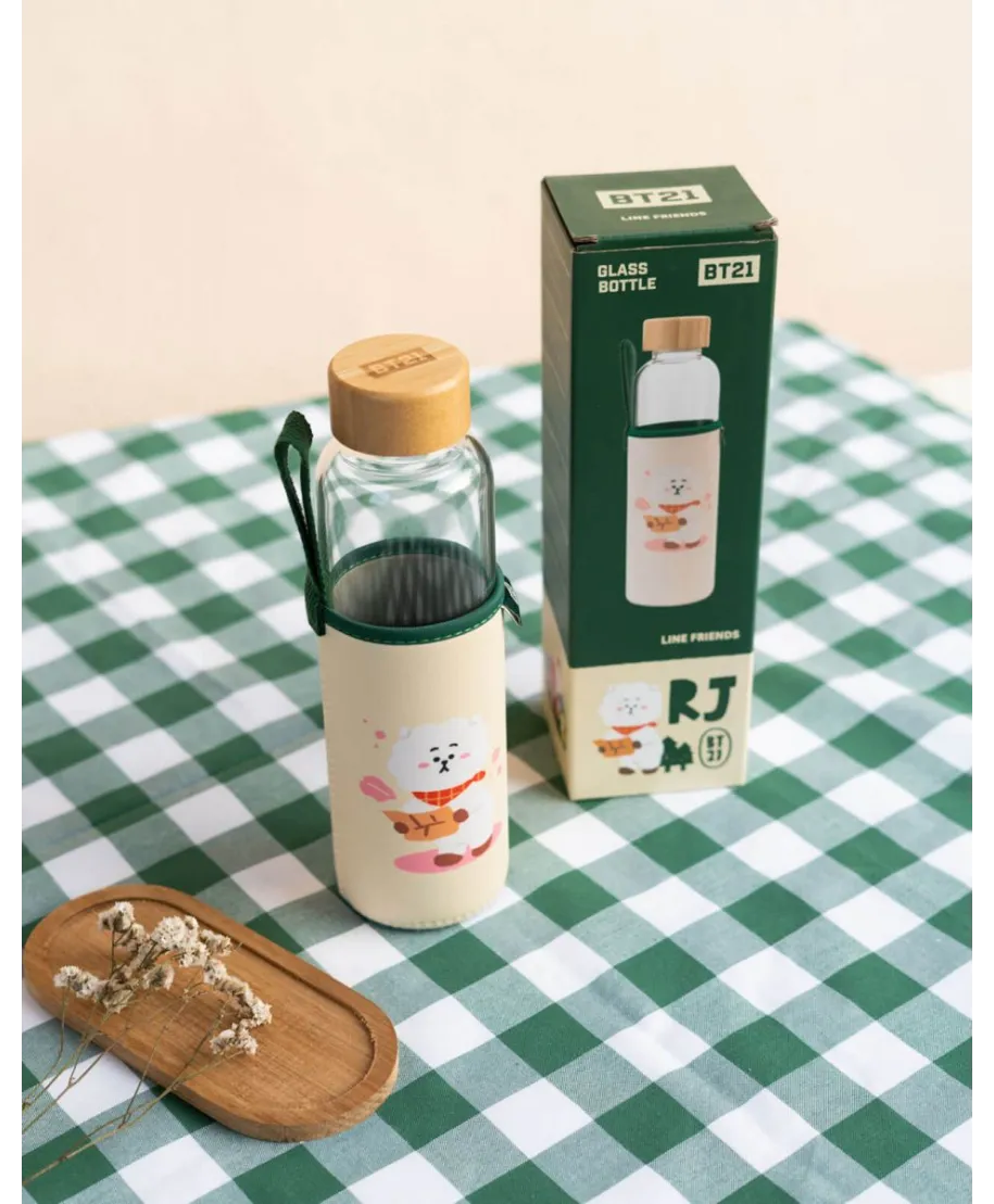 Butelka ze szkła BT21 RJ Wybierając szklanąeco butelkę wielokrotnego użytku dbasz o nasze środowisko. Butelka na napoje z oryginalnymmotywem jest świetnym gadżetem dla każdego fana. Wykonana ze szkłaborokrzemianowego. Pojemność 500 ml. Marka: Grupoerik