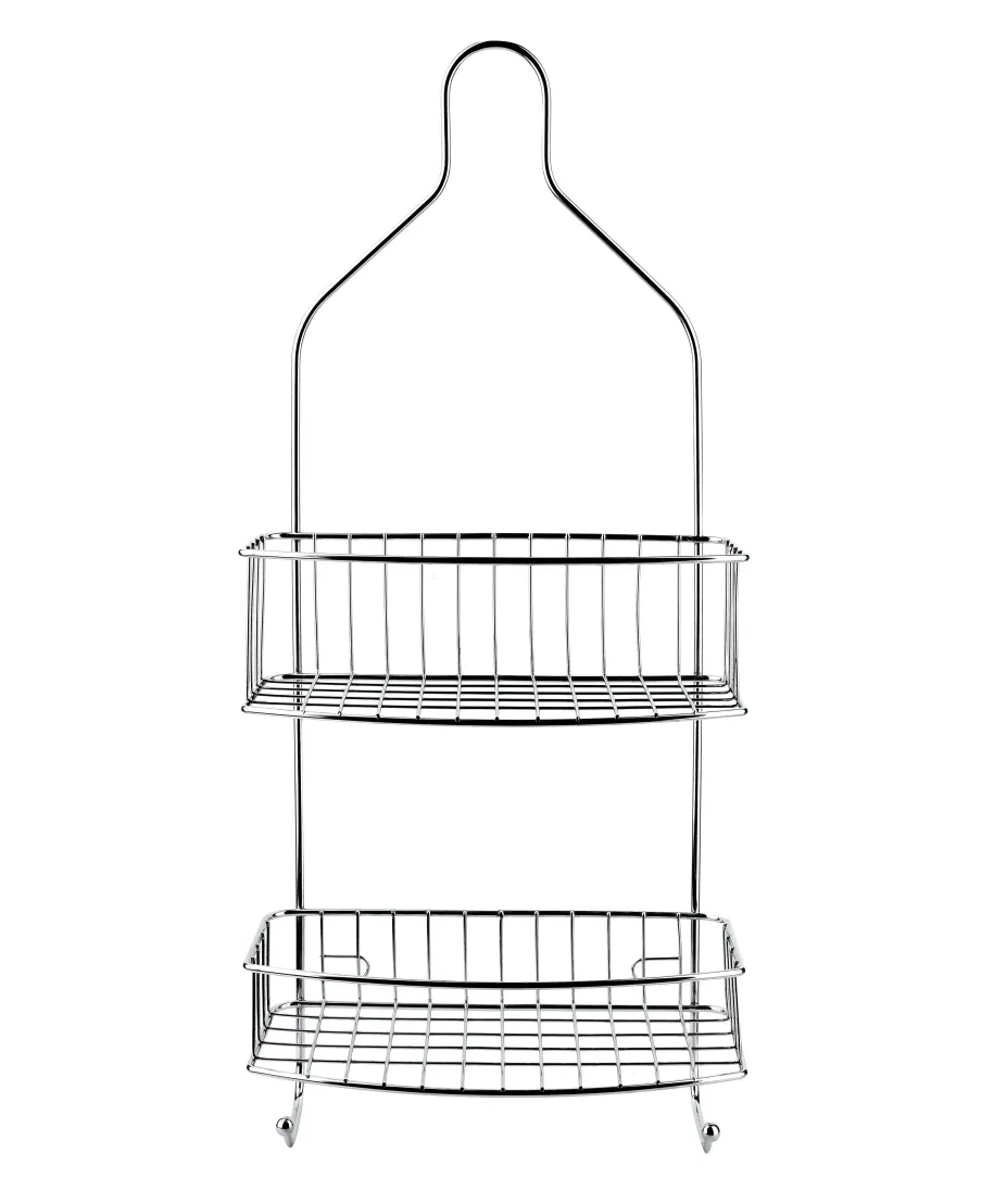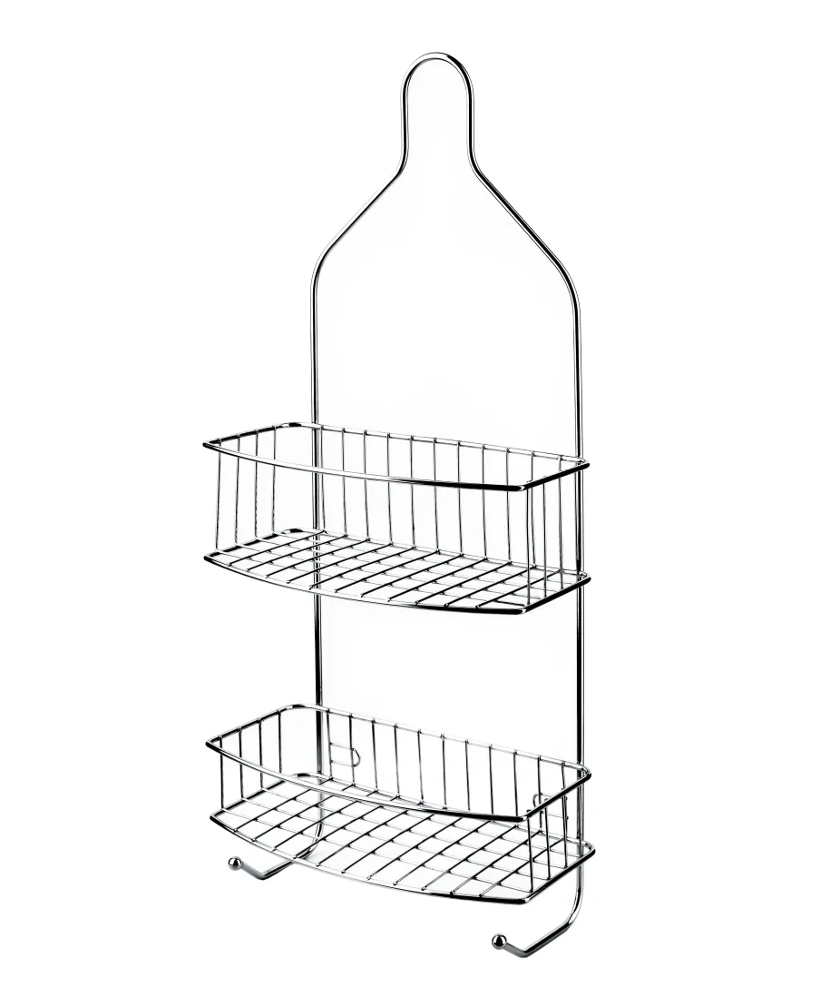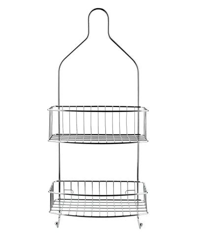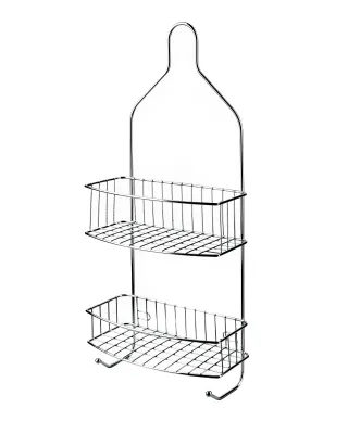 CARL SILVER Półka łazienkowa posiadająca dwie półki, wykonana z metalu.Wymiary: 15 cm (szerokość) x 11.5 cm (głębokość) x 56 cm (wysokość).Liczba półek: 2 półki.Kolor: SrebrnyDodatki w zestawie: Dwa wieszaki plastikowe do montażu. Idealna do użytku w łazience na przechowywanie kosmetyków, akcesoriów kąpielowych czy małych ręczników. Dzięki dołączonym wieszakom, możliwy jest łatwy montaż na ścianie lub na drzwiach kabiny prysznicowej.wymiary:15x11,5x56cm