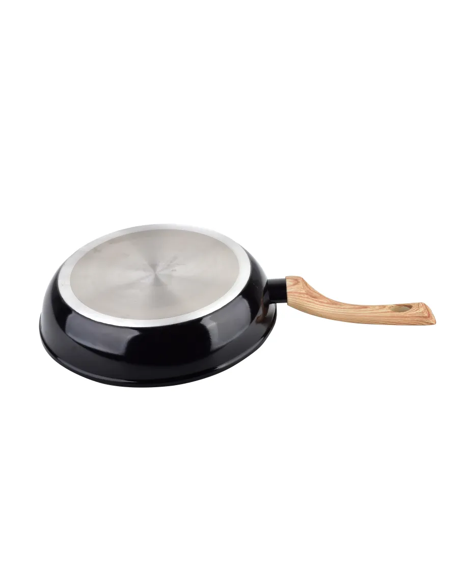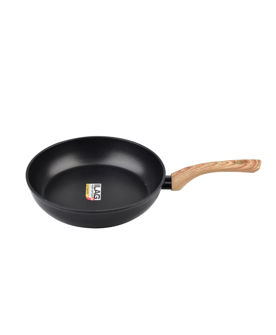 Patelnia o średnicy 28cm z nieprzywierającą powłoką ILAG ULTIMATE marki Cookini. Trzywarstwowa nieprzywierająca powłoka ILAG jest odporną na zarysowania i ścieranie powłoką zaprojektowaną specjalnie do intensywnego użytkowania. Nadaje się do wszystkich rodzajów kuchenek, w tym indukcyjnych. Materiał wykonania: prasowane aluminium, tworzywo sztuczne Kolor: czarny, drewniana rączka Powłoka: ILAG ULTIMATE Informacje dodatkowe: możliwość używania na kuchni indukcyjnej, nienagrzewające się uchwyty Długość całkowita (cm):45 Wysokość (cm):5.9 Średnica zewnętrzna (cm):26