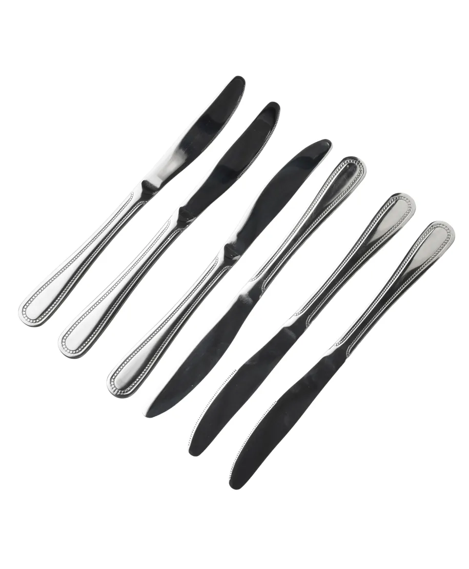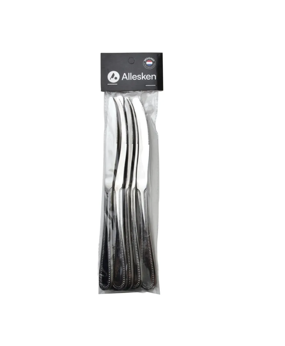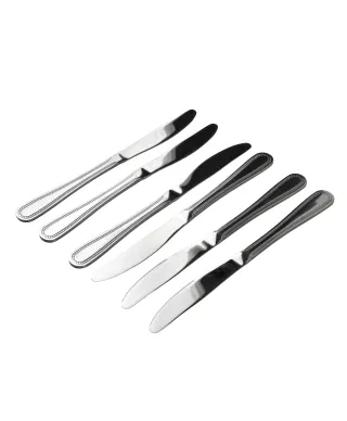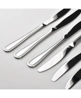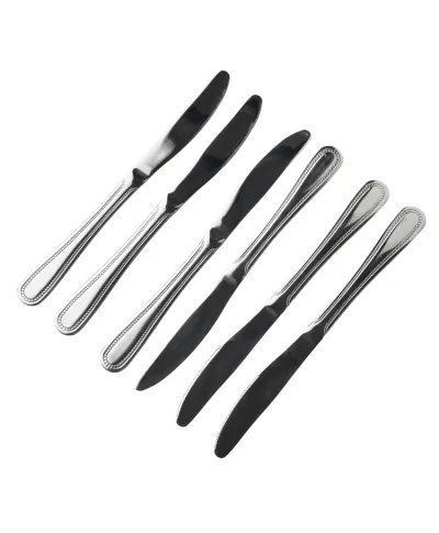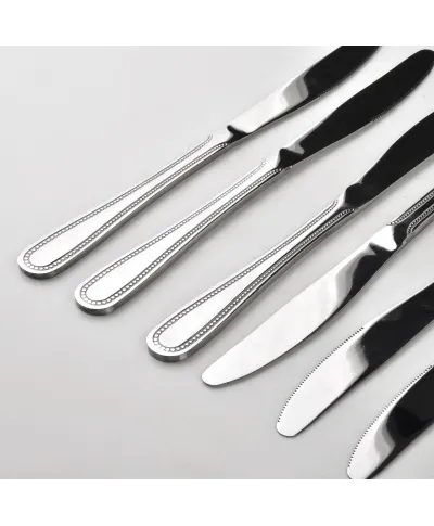 Komplet 6 noży CHAMOMILE o długości 22cm to praktyczne i estetyczne uzupełnienie każdej kuchni. Noże wykonane zostały z wysokiej jakości stali nierdzewnej, co zapewnia trwałość, odporność na korozję oraz długotrwałą ostrość. Ich uniwersalnyrozmiar sprawia, że świetnie sprawdzają się do codziennego użytku . zarówno do krojenia warzyw, owoców, jak i mięsa czy pieczywa. Gładka powierzchnia ułatwia czyszczenie, a możliwość mycia w zmywarce czyni je wyjątkowo wygodnymi w codziennej pielęgnacji. Nowoczesny i elegancki wygląd noży TULIP sprawia, że będą one nie tylko funkcjonalnym, ale i stylowym dodatkiem do kuchni. długość: 22cm Użytkowanie Zaleca się mycie ręczne w celu zachowania ich połysku. Używaj łagodnych detergentów i miękkich gąbek, aby uniknąć zarysowań. Suszenie: Po umyciu sztućców zaleca się dokładne ich osuszenie, aby uniknąć powstawania plam wodnych, szczególnie w przypadku twardej wody. Używanie z kwaśnymi potrawami: Długotrwały kontakt ze silnie kwaśnymi potrawami (np. ocet, cytryna) może prowadzić do powstania przebarwień na powierzchni sztućców. Po użyciu z takimi produktami, sztućce należy szybko umyć