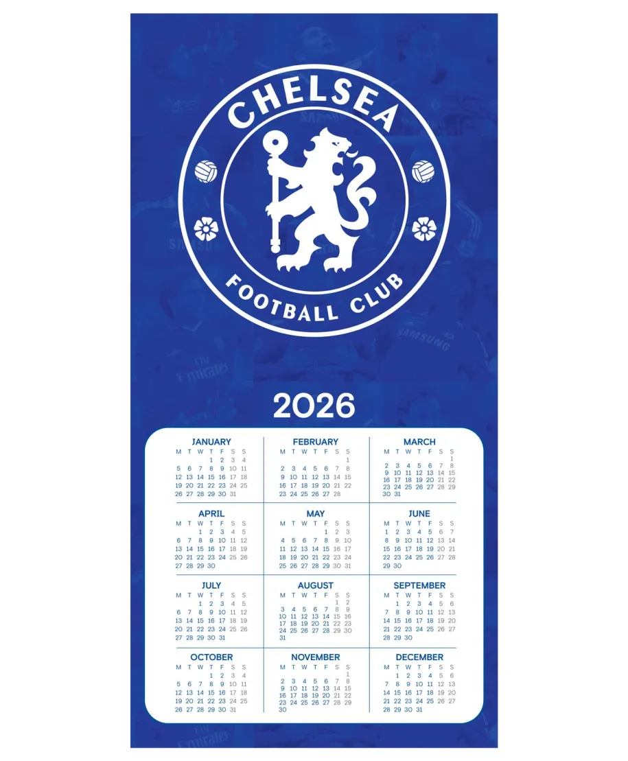 Chelsea FC Legends oficjalny kalendarz na ścianę na 2026rok Oryginalny i licencjonowany kalendarz, posiada 12 rozkładanych stron o wymiarach 30x60 cm. Na każdej z kart znajduje się duża fotografiaoraz czytelne kalendarium z miejscem na notatki. W kalendarzu znajduje się 12 unikalnych zdjęć dla każdego miesiąca. Okładki wykonane są z papieru powlekanego matowego i laminowanego o gramaturze 250 g/m?, wnętrze z papieru powlekanego matowego o gramaturze 150 g/m?. Nagłówki są w języku angielskim. Oprawa zszywkowa. Złożony kalendarz 30x30 cm. Rozłożony kalendarz 30x60 cm. Zawiera otwór 5 mm do zawieszenia na ścianie.